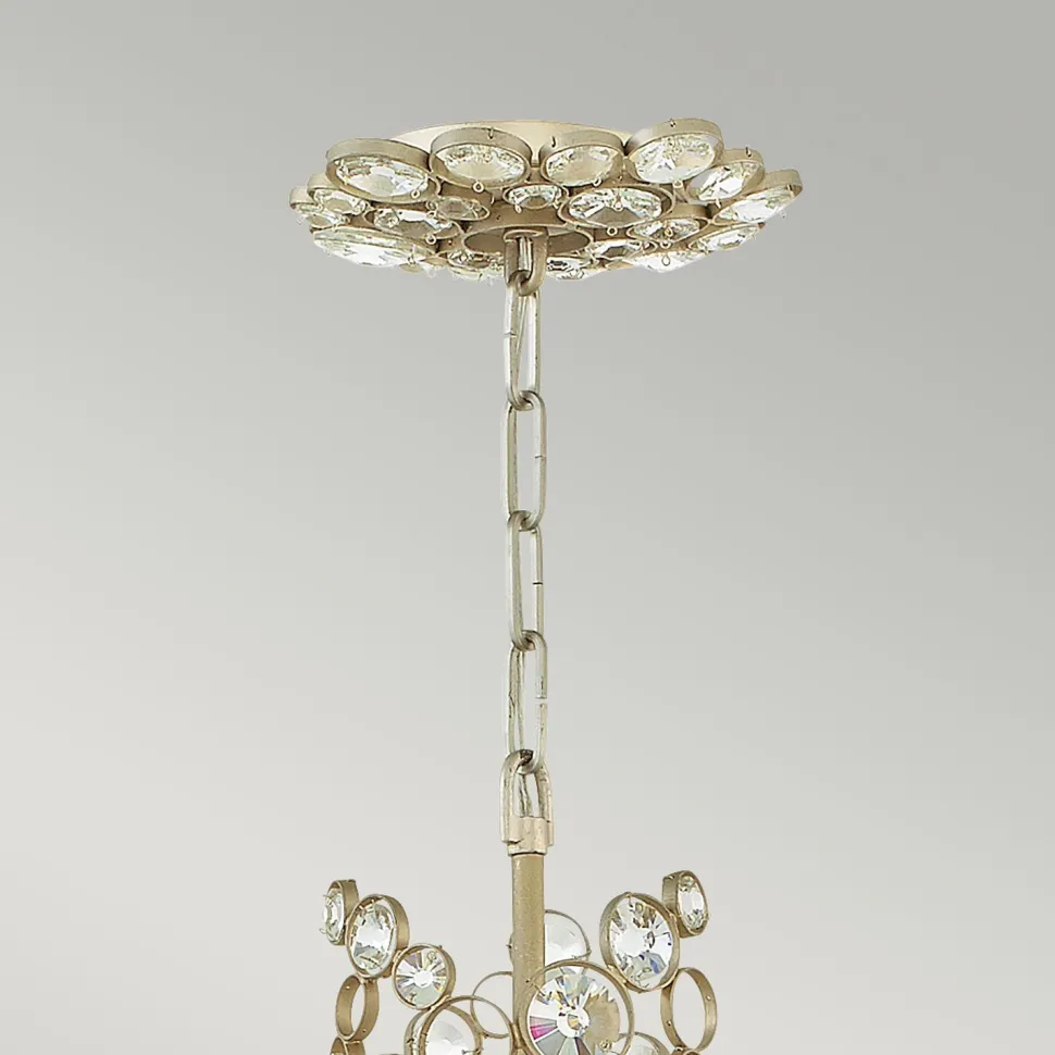 Eine Vielzahl an geschliffenen Kristallen setzen einen dekorativen Akzent und machen aus der Hängelampe einen außergewöhnlichen Lichtbringer
