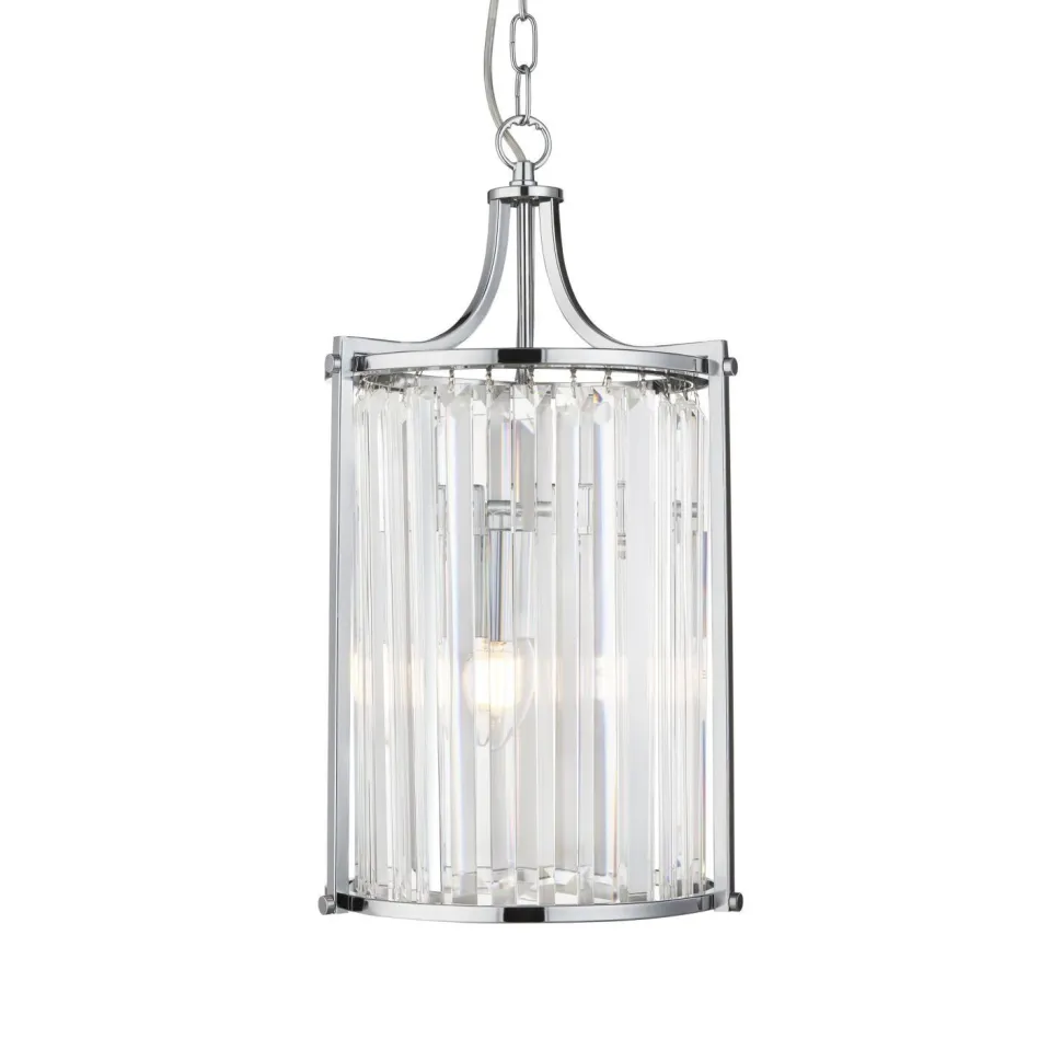 Die funkelnden Glas Kristalle sorgen für einen dekorativen Look und verleihen der Hängelampe den Glanz der 1920er Jahre – ein absolutes Highlight in jedem Raum