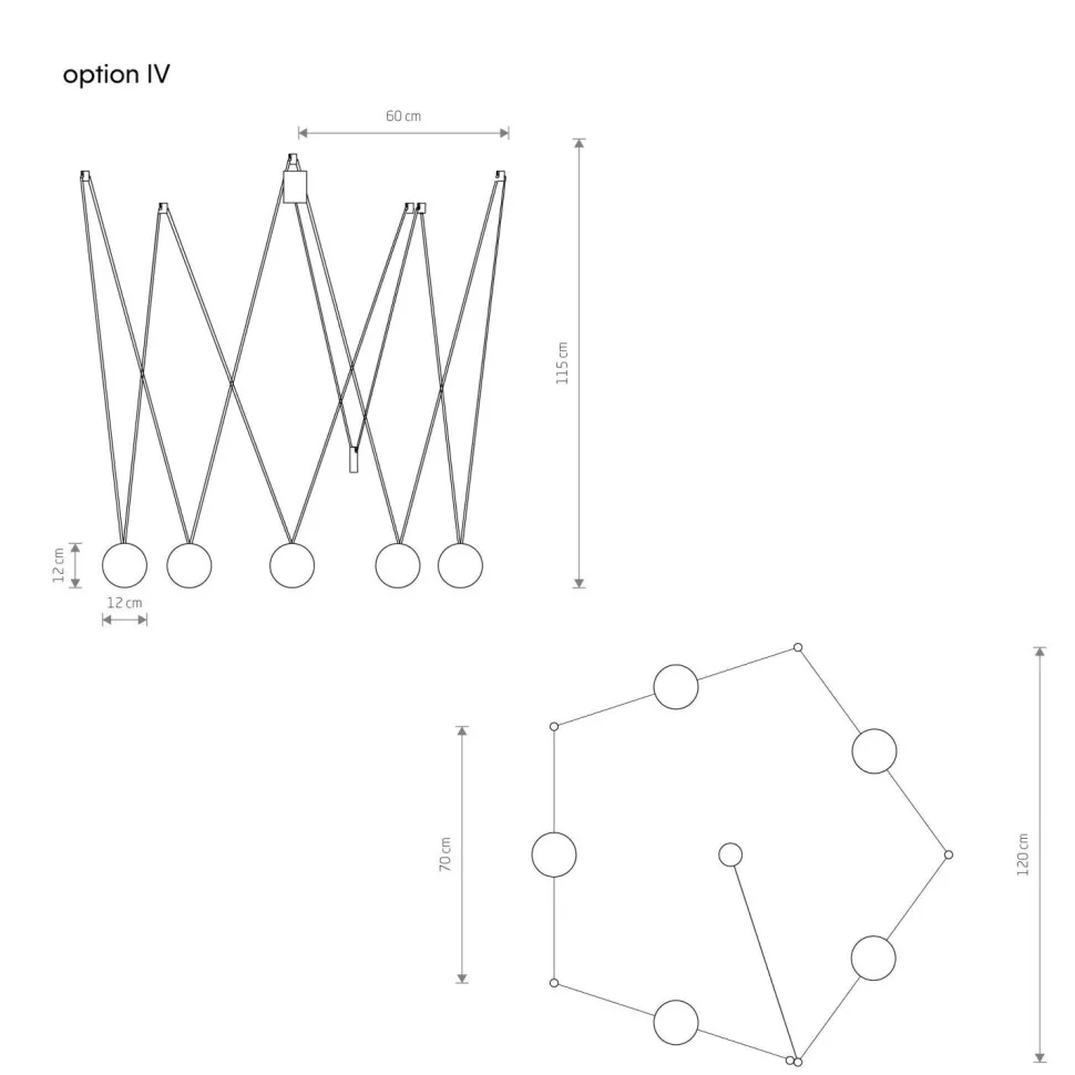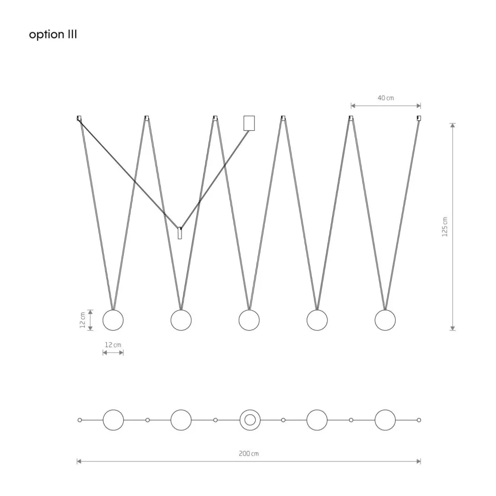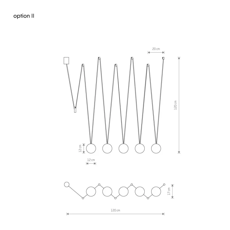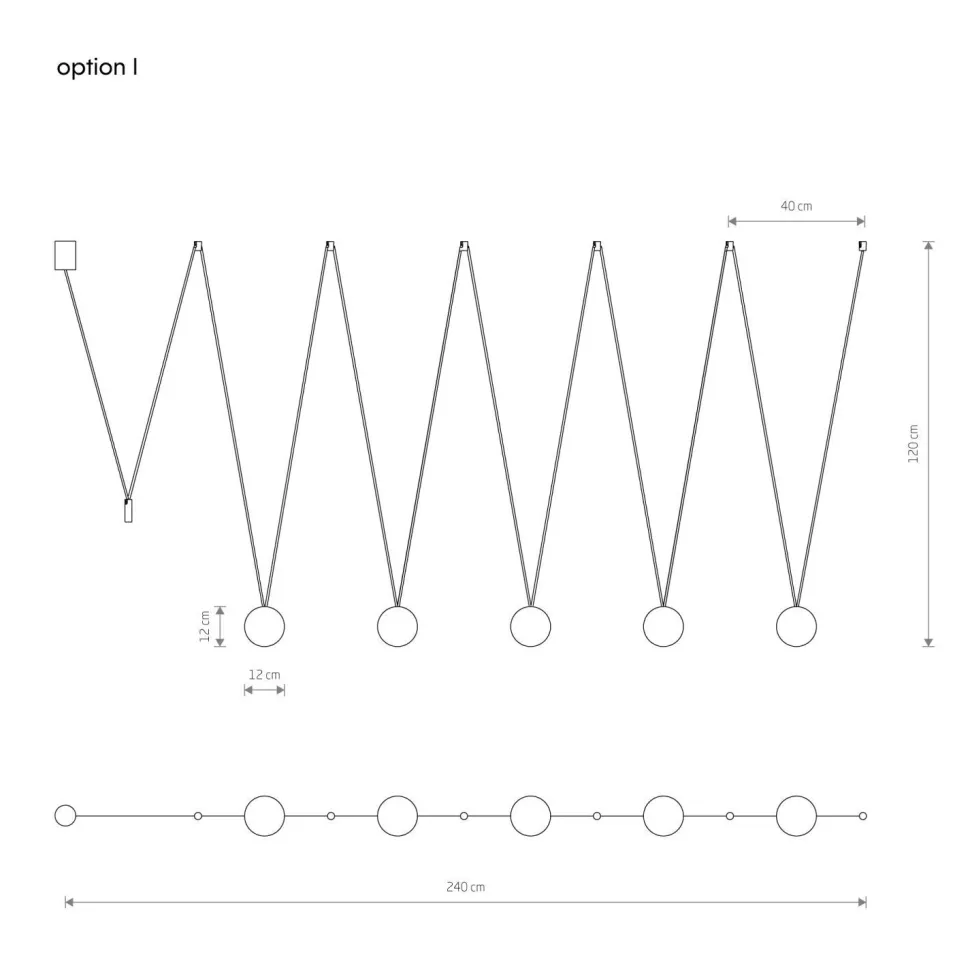| Maße: | Breite: 120 mm | Hängetiefe: 1250 mm | Länge: 2400 mm | Durchmesser Schirm: 120 mm | Höhe Schirm: 120 mm | Durchmesser Sockel/Wandhalterung: 55 mm |