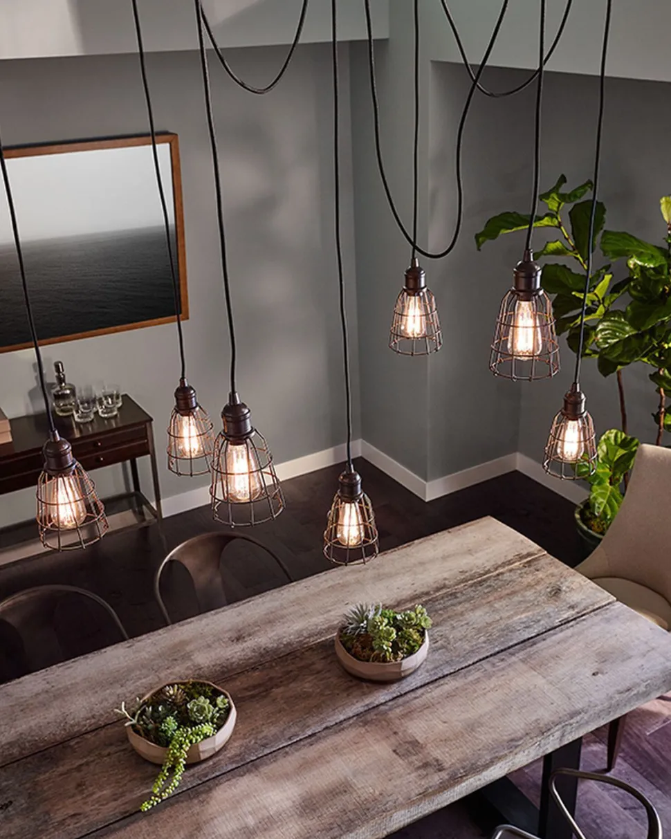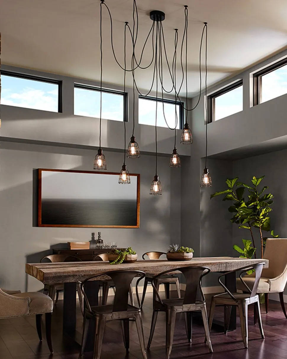 Das Kabel (450cm) lässt sich individuell in der Höhe verstellen; perfekt für den Einsatz über dem Esstisch oder Couchtisch und ideal für sehr hohe Decken