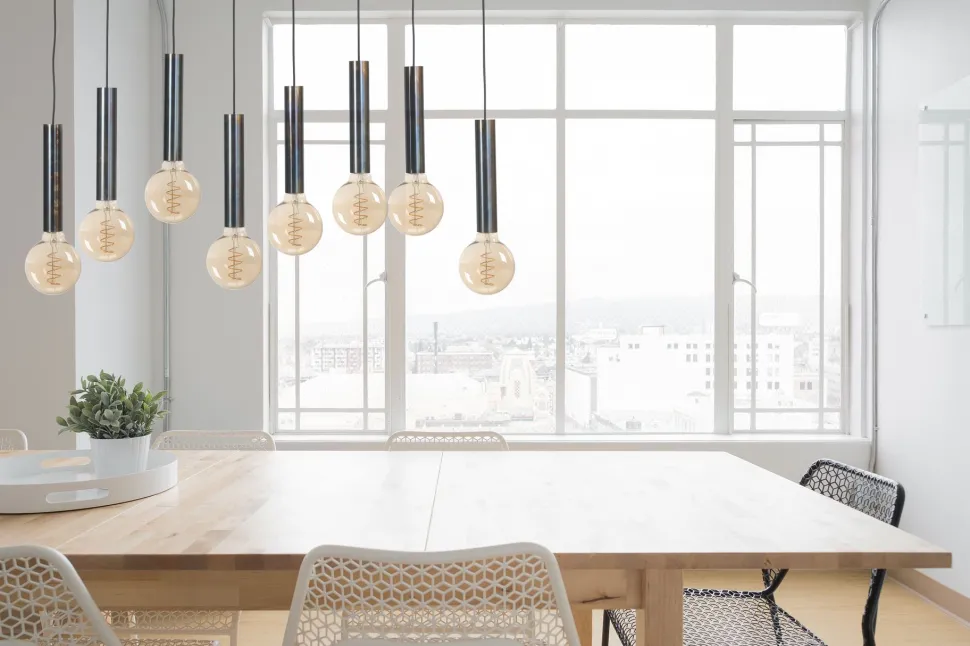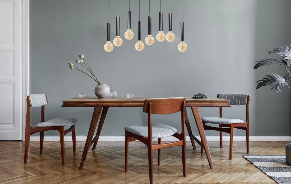 Die Hängelampe sorgt für eine direkte Beleuchtung und ist ideal für Küche, Wohnzimmer und Esszimmer