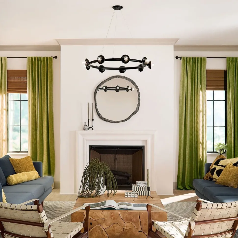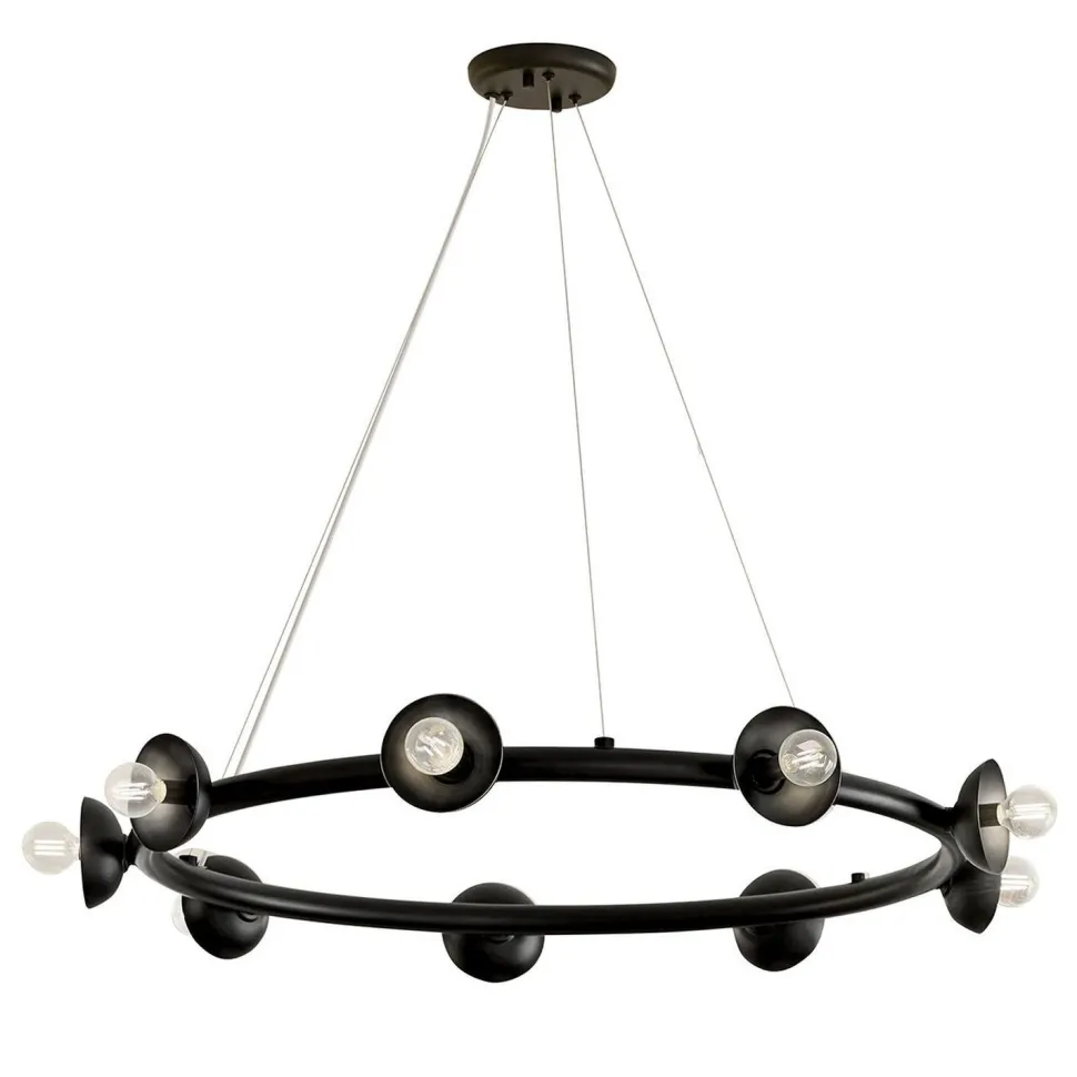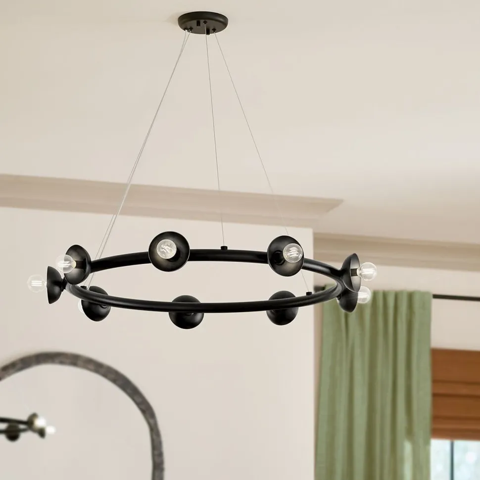 Runder Kronleuchter aus Metall in Schwarz für Wohnzimmer und Esszimmer