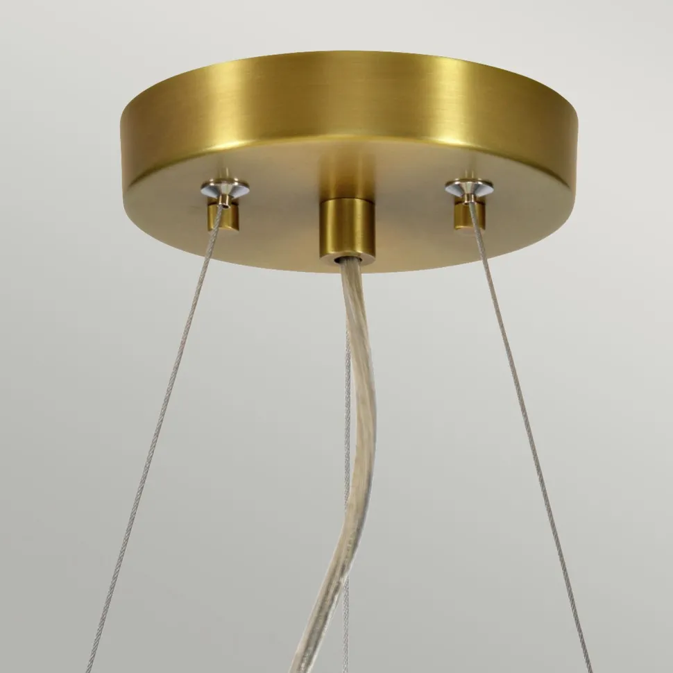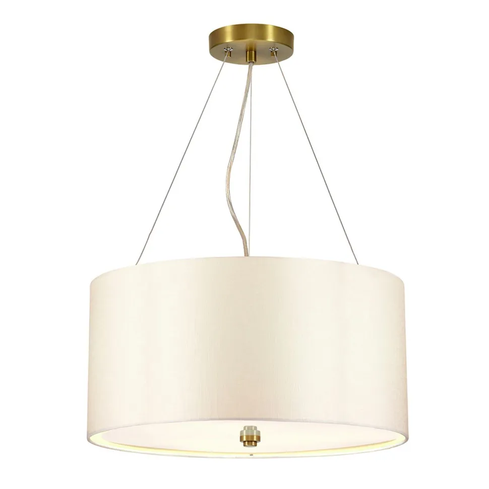 Runde Hängeleuchte mit Stoffschirm in Creme und Messing