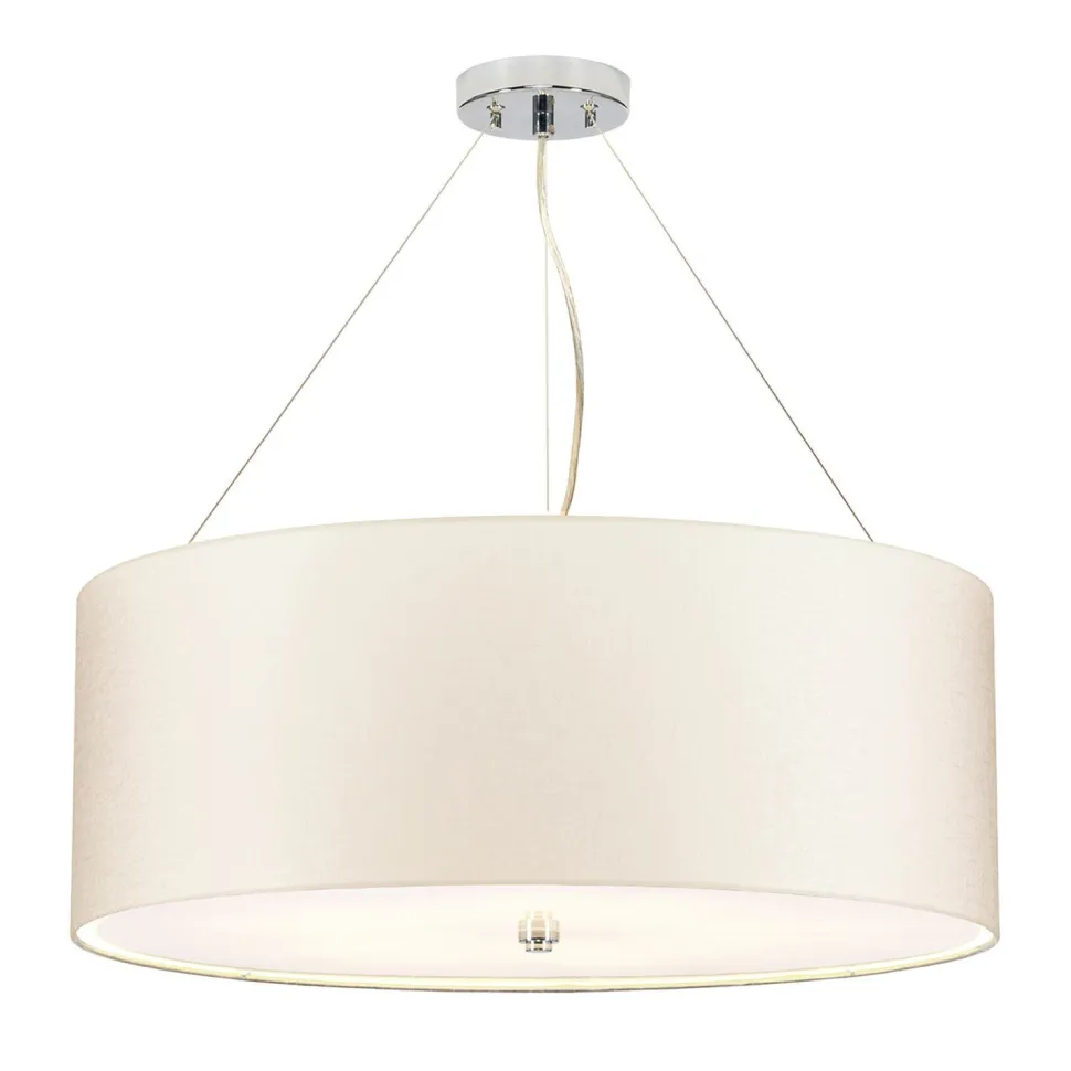 Runde Deckenleuchte mit Stoffschirm in Creme und Chrom