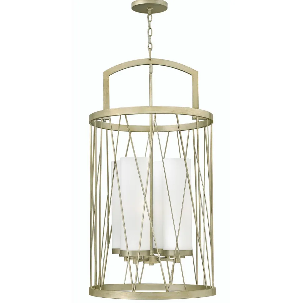 Ein geometrisches Gitter aus Metall sowie die Veredelung mit Blattsilber machen die Deckenlampe zu einem dekorativen Highlight