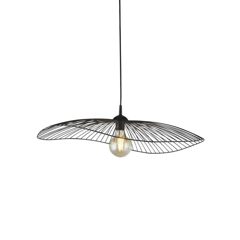 Große Pendelleuchte mit offenem Draht Schirm in Schwarz