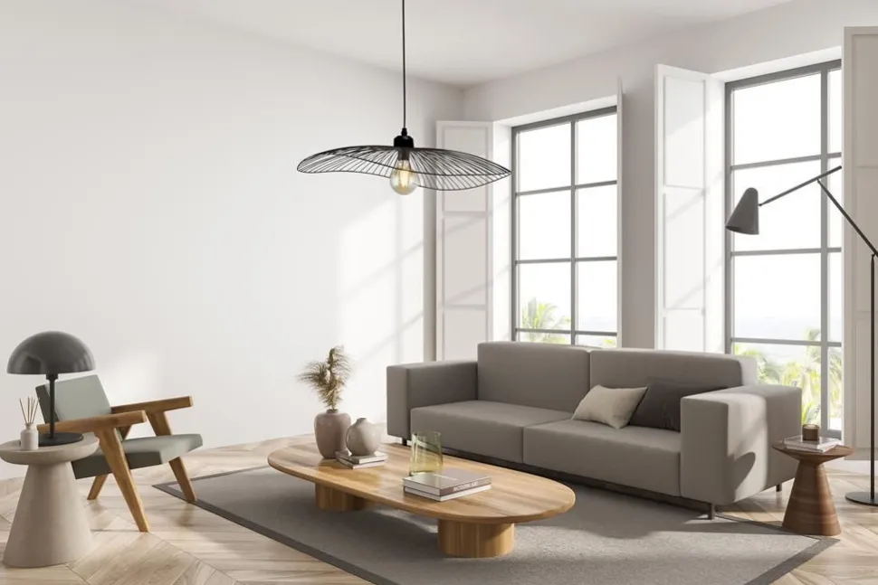 Multifunktional: Die Hängelampe lässt sich in der Höhe verstellen und kann bei Bedarf flach an der Decke montiert werden, was den Einsatz als Deckenleuchte erlaubt – ideal über dem Esstisch und für niedrige Decken
