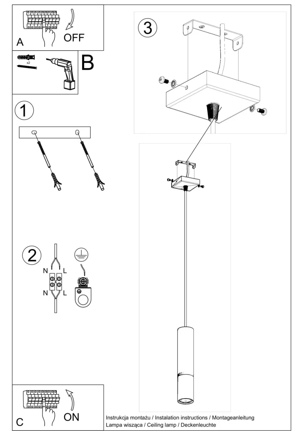 | Maße: | Breite: 80 mm | Hängetiefe: 1000 mm | Länge: 80 mm | Durchmesser Schirm: 60 mm | Höhe Schirm: 290 mm | Durchmesser Sockel/Wandhalterung: 60 mm |