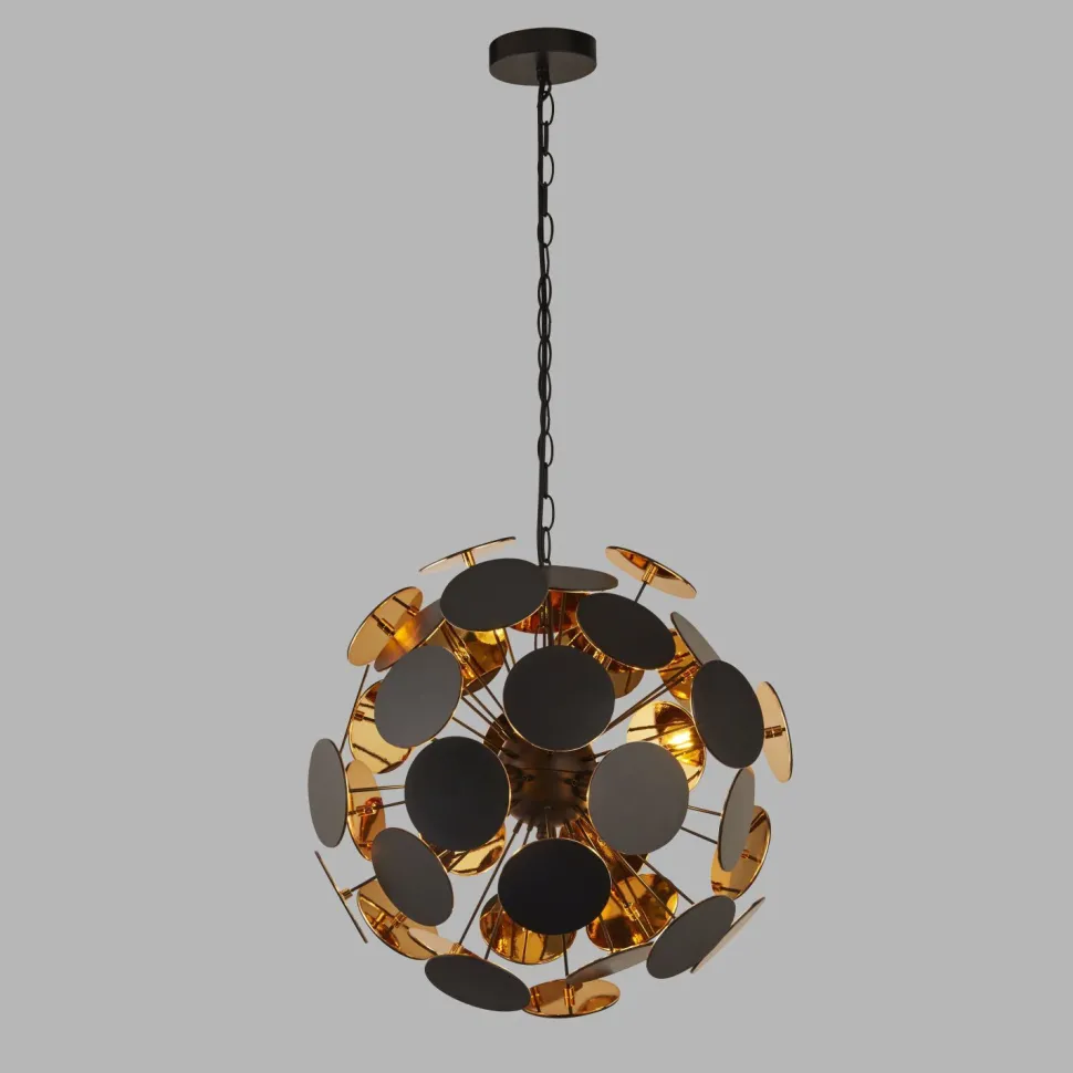 Der offene Schirm aus Kreisen besticht durch sein außergewöhnliches Design, was die Hängeleuchte zu einem dekorativen Highlight in jedem Raum macht