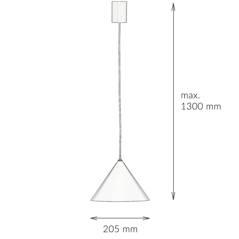 | Maße: | Breite: 205 mm | Hängetiefe: 1300 mm | Länge: 205 mm | Durchmesser: 205 mm | Höhe Schirm: 130 mm | Durchmesser Sockel/Wandhalterung: 55 mm |