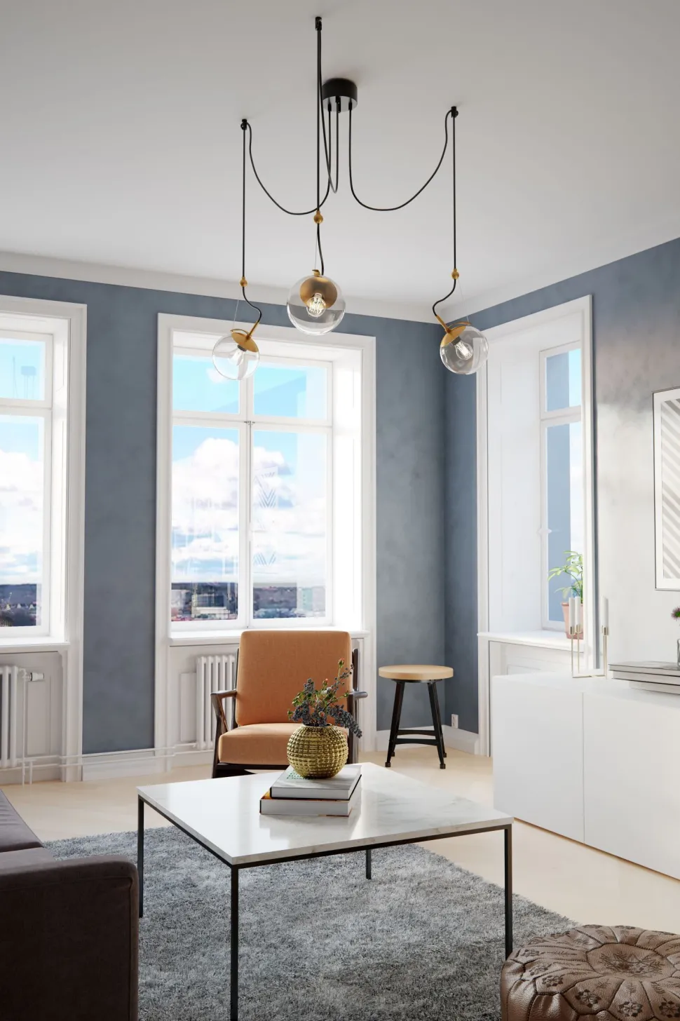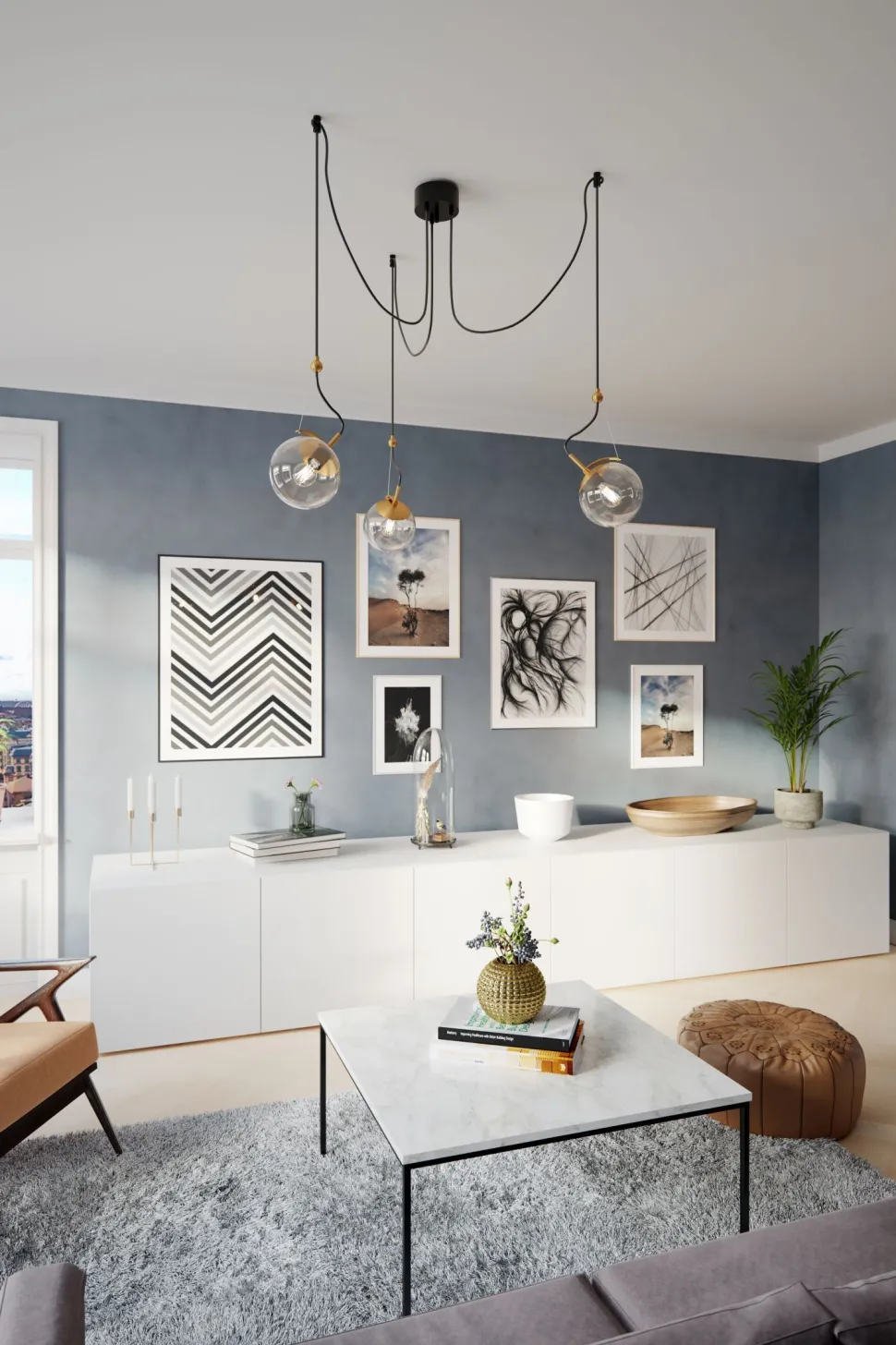 Die Farben Grau und Messing sorgen für einen eleganten Look, der sich leicht mit vielen Einrichtungsstilen kombinieren lässt