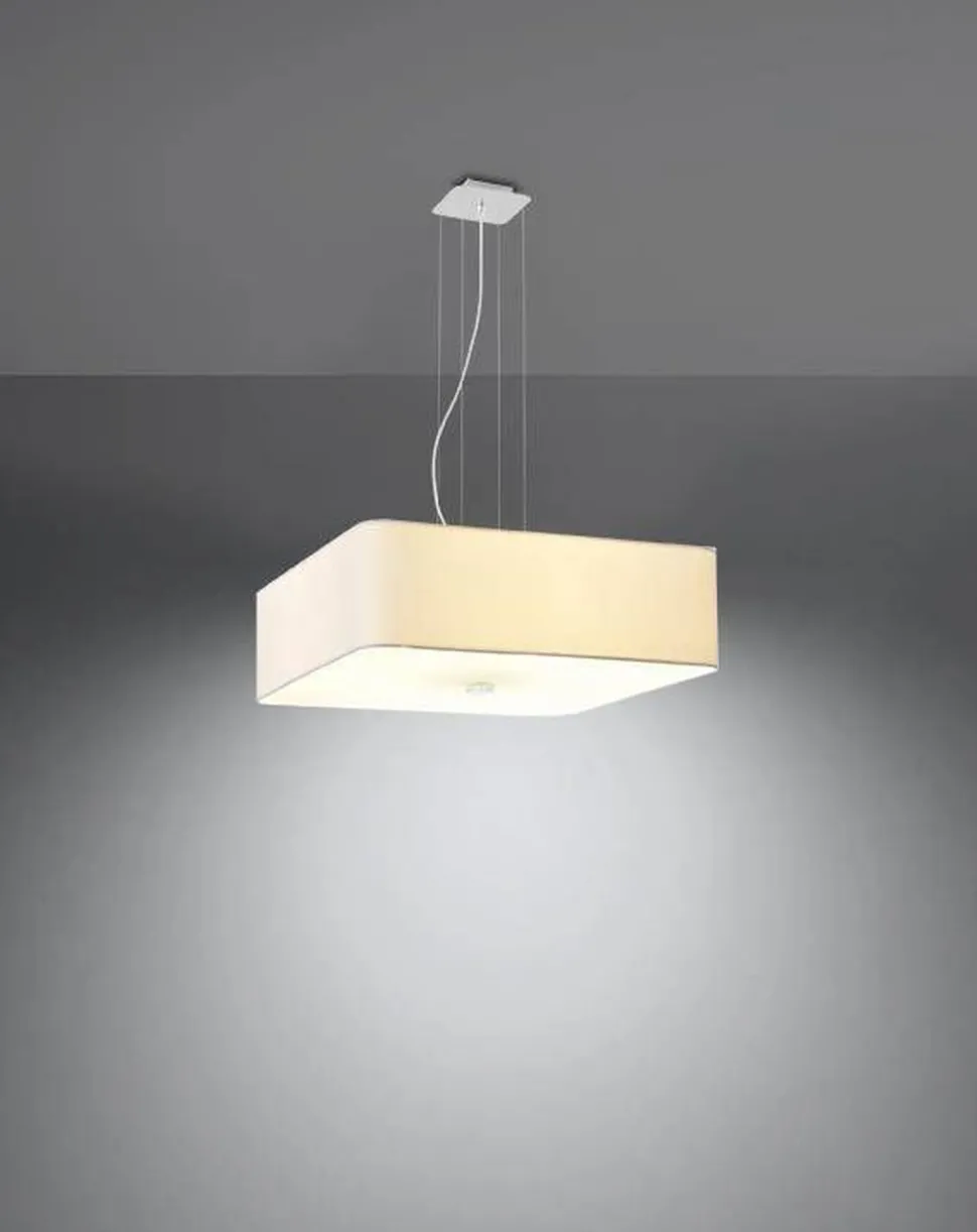 Wohnliche Pendelleuchte mit Stoff Schirm in Weiß