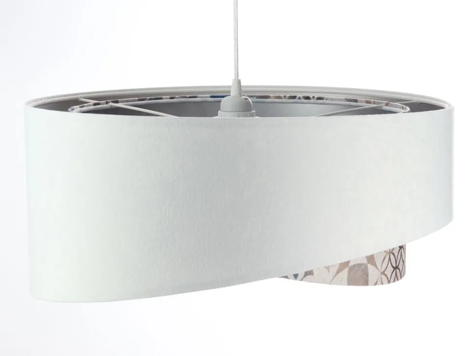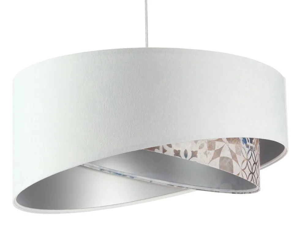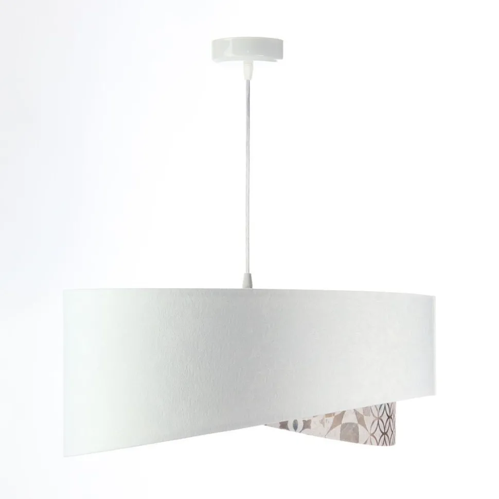 Elegante Pendelleuchte in Weiß, Beige, Silber mit stilvollen Vintage Print für Wohnzimmer, Schlafzimmer und Esszimmer