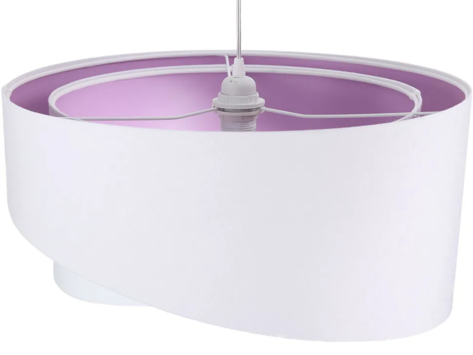 Außen besteht der Schirm aus weißem Microfaser-Stoff in Velours-Optik (Durch die Oberflächen kann der Schirm je nach Licht heller oder dunkler wirken), was einen samtigen Effekt erzeugt; innen setzt kräftiges Flieder einen farblichen Akzent