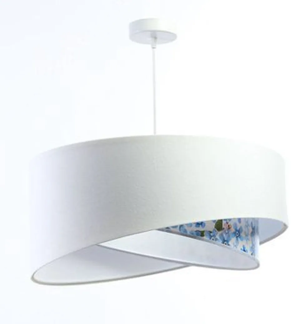 Elegante Pendelleuchte in Weiß, Hellblau mit farbenfrohem Blumen-Print für Wohnzimmer, Schlafzimmer und Esszimmer
