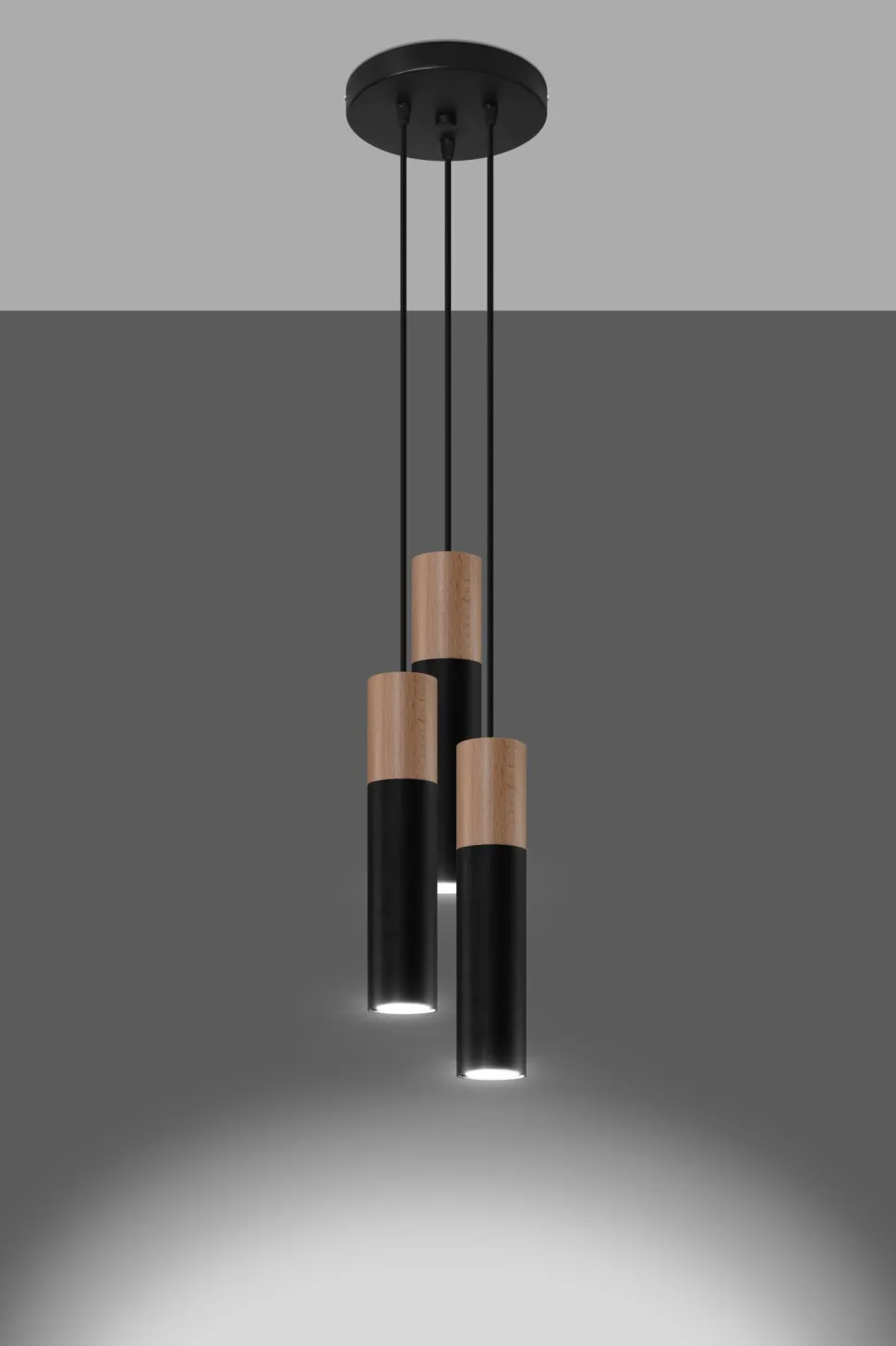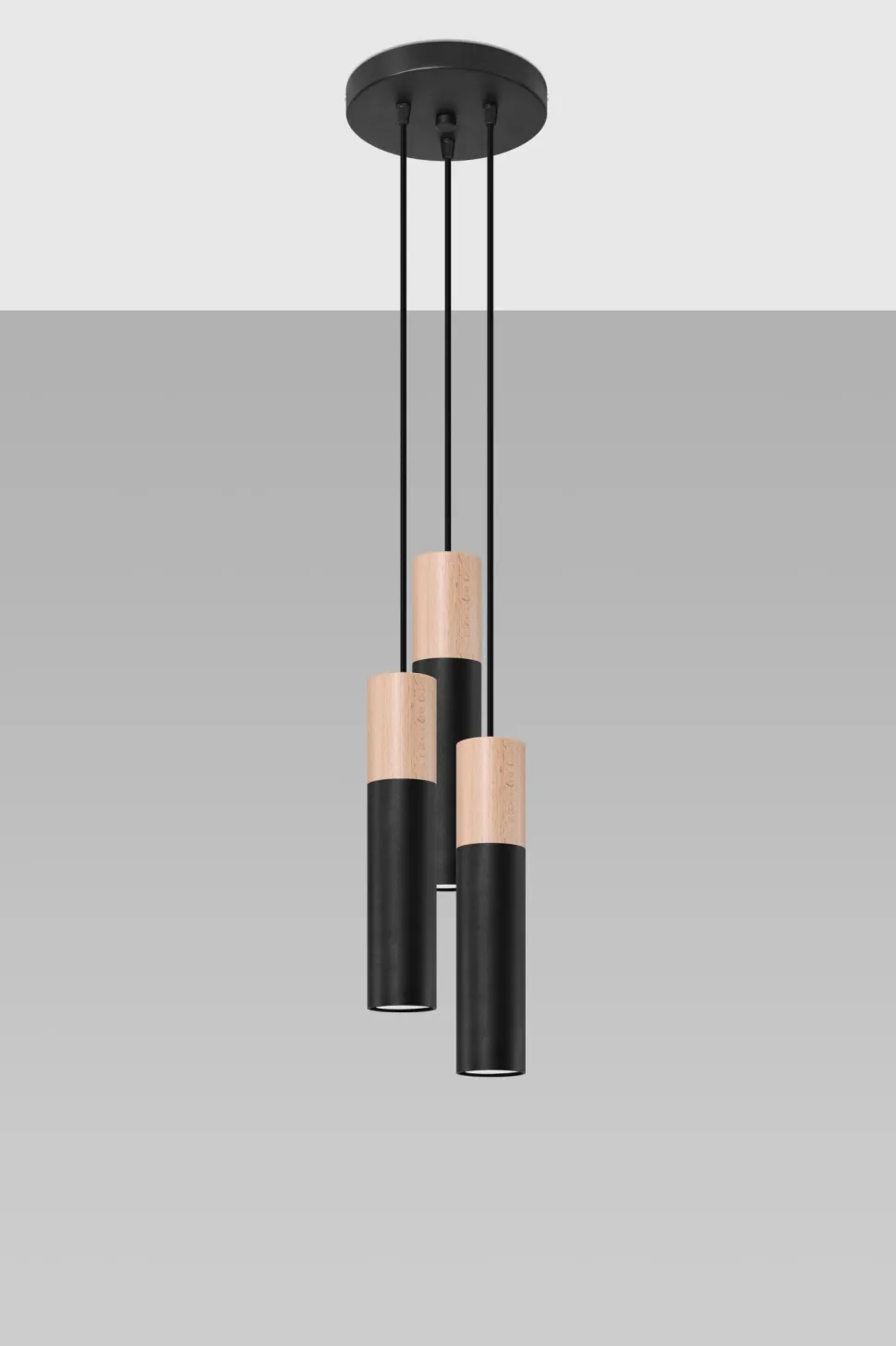 Moderne Pendelleuchte in Schwarz und Natur