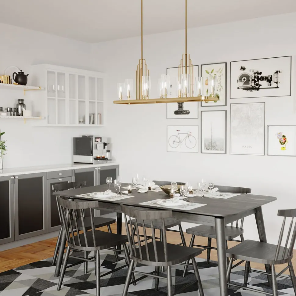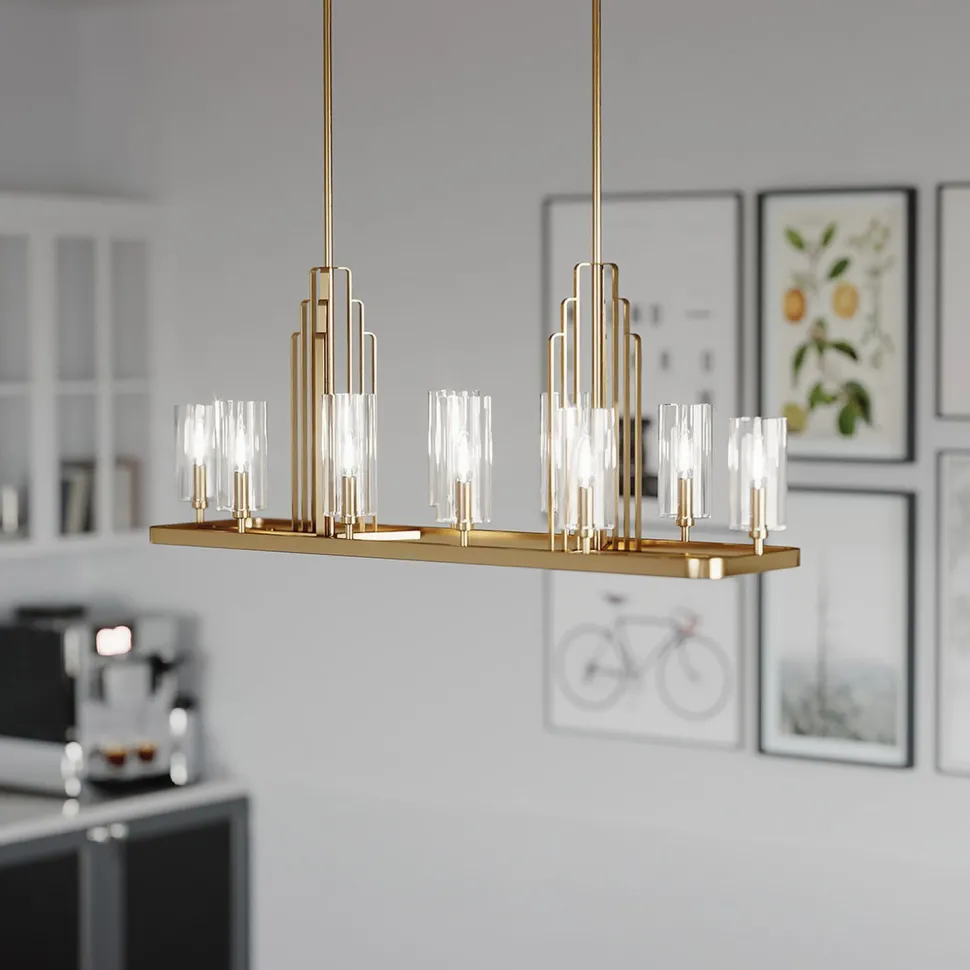 Das geradlinige Design ist antiken Art Déco Leuchten nachempfunden, was der Hängelampe einen nostalgischen Charakter verleiht