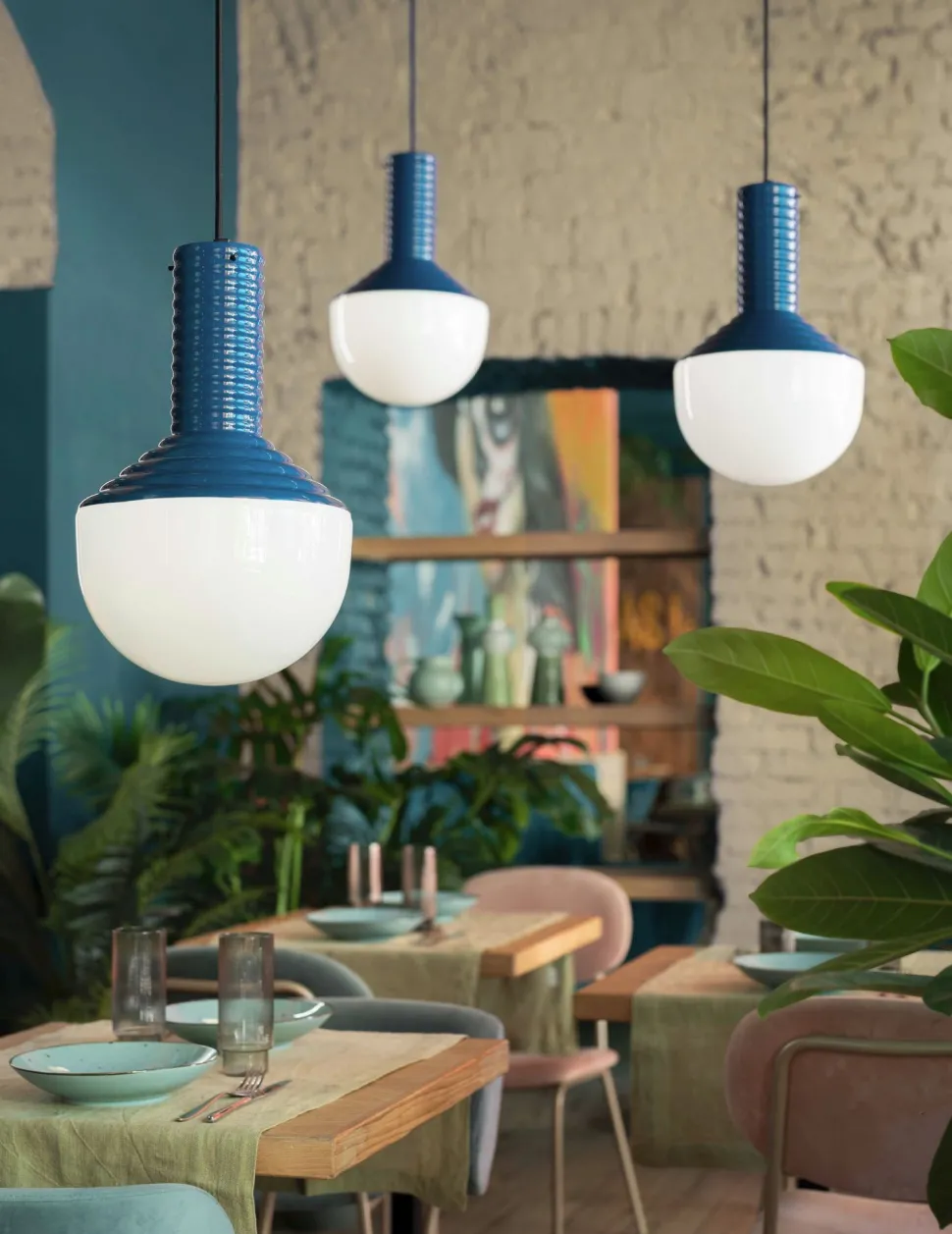 Die Retro Hängelampe besticht durch die Kombination aus außergewöhnlichem Design, hochwertigen Materialien und außergewöhnlicher Farbe – ein dekorativer Blickfang in jedem Raum
