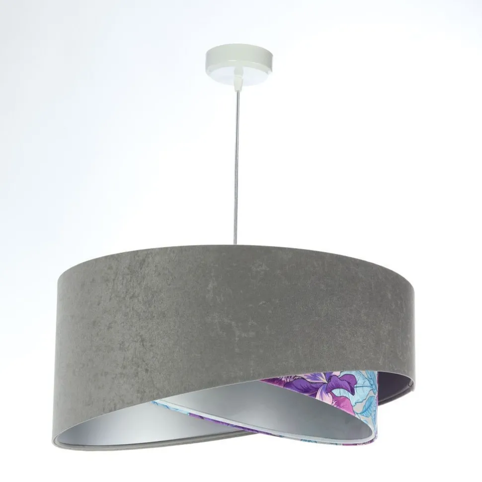 Elegante Pendelleuchte in Grau, Lila, Silber mit farbenfrohem Blumen-Print für Wohnzimmer, Schlafzimmer und Esszimmer