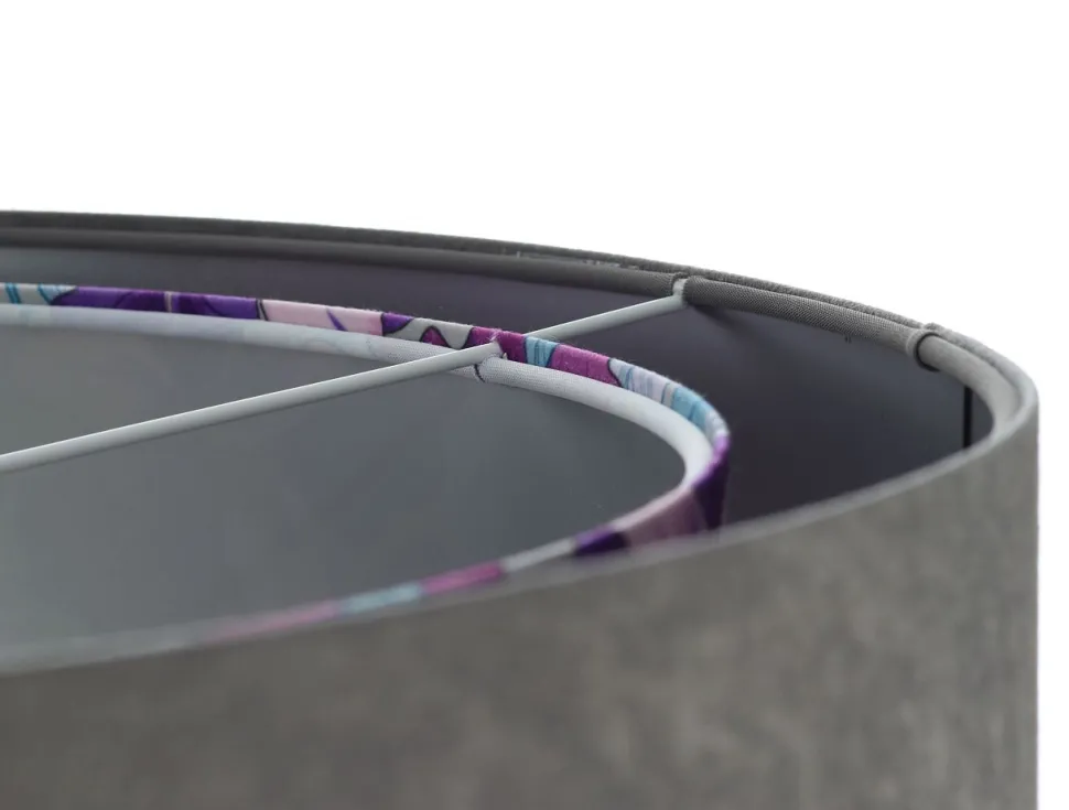 Der Doppelschirm aus Microfaser Stoff erinnert an samtiges Velours-Leder und setzt überall einen stilvollen und dekorativen Akzent (Durch die Oberflächen kann der Schirm je nach Licht heller oder dunkler wirken)