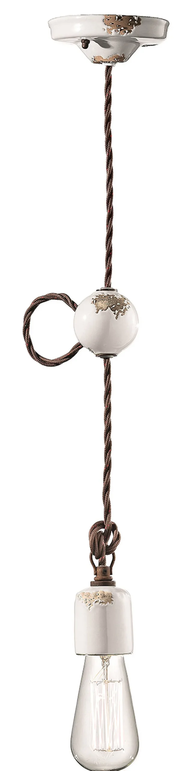 Verstellbare Pendelleuchte aus Keramik und Metall in hellem Weiß