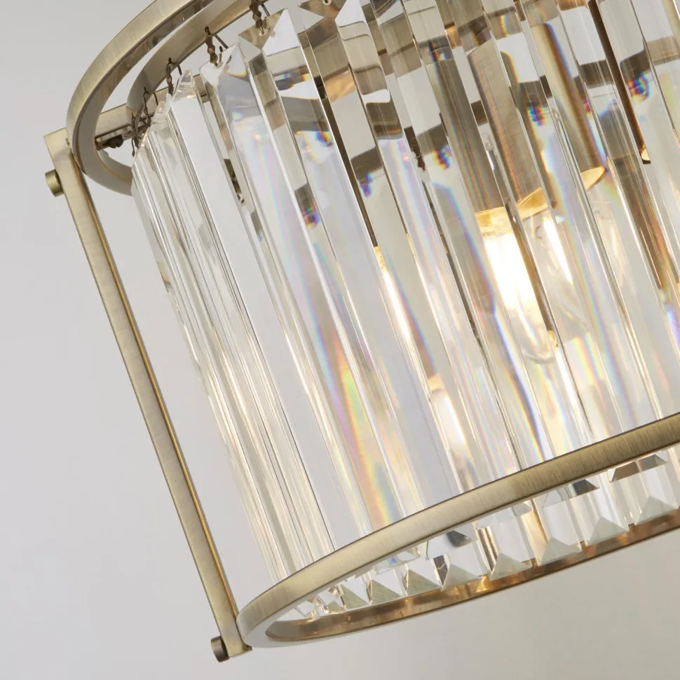 Die funkelnden Glas Kristalle sorgen für einen dekorativen Look und verleihen der Hängelampe den Glanz der 1920er Jahre – ein absolutes Highlight in jedem Raum