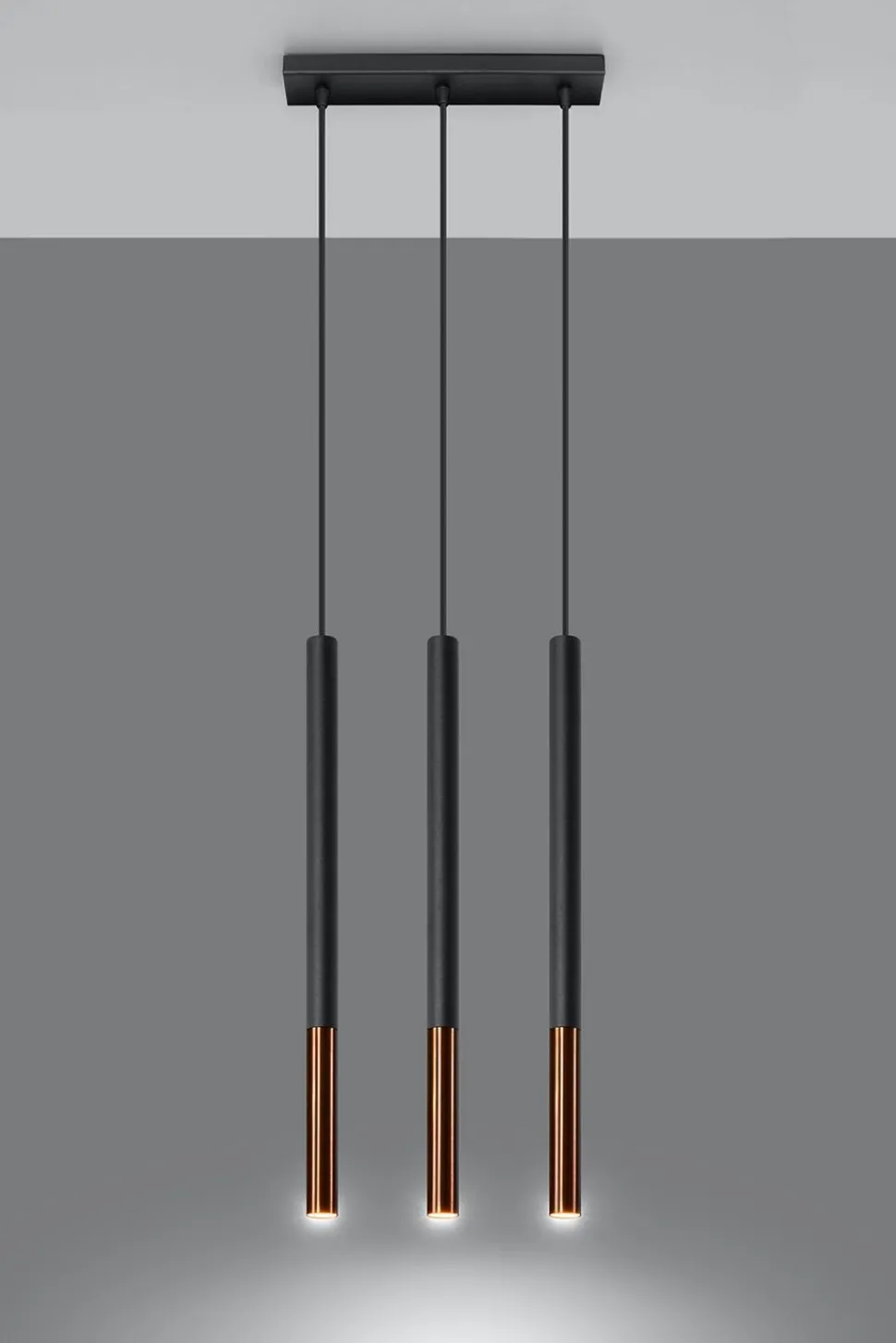 Moderne Pendelleuchte in Schwarz und Kupfer
