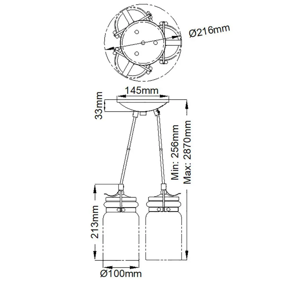 | Maße: | Breite: 216 mm | Hängetiefe: 256-2870 mm | Länge: 216 mm | Höhe Schirm: 197 mm | Kabellänge: 2600 mm |