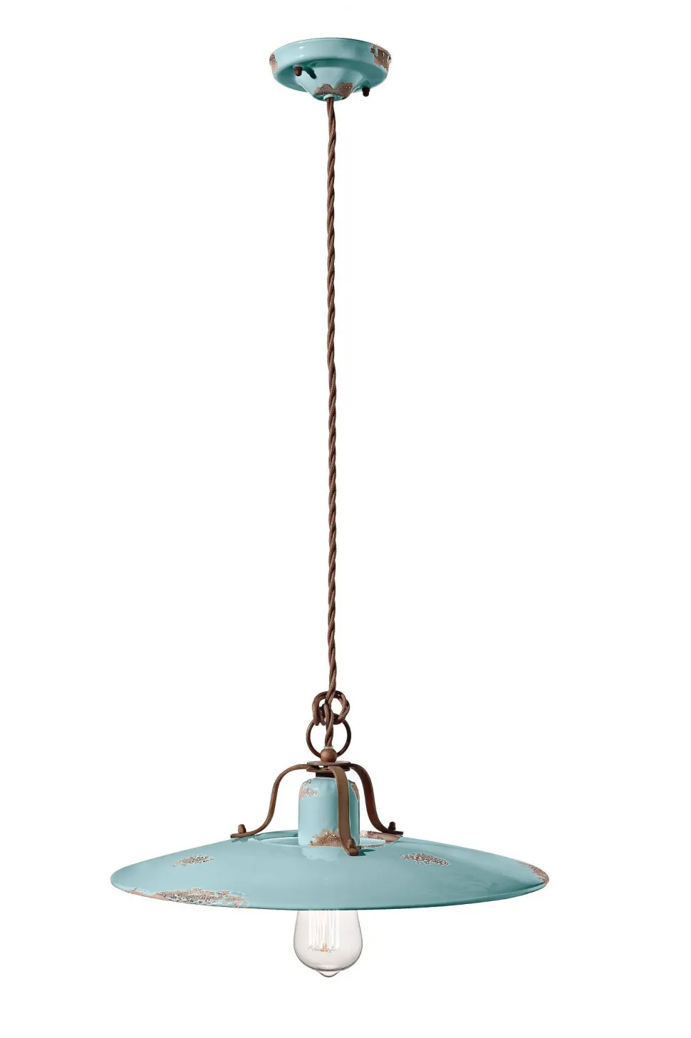 Die antik wirkende Oberfläche verleiht der Hängelampe einen einzigartigen Look, der in jedem Raum zu einem dekorativen Blickfang wird