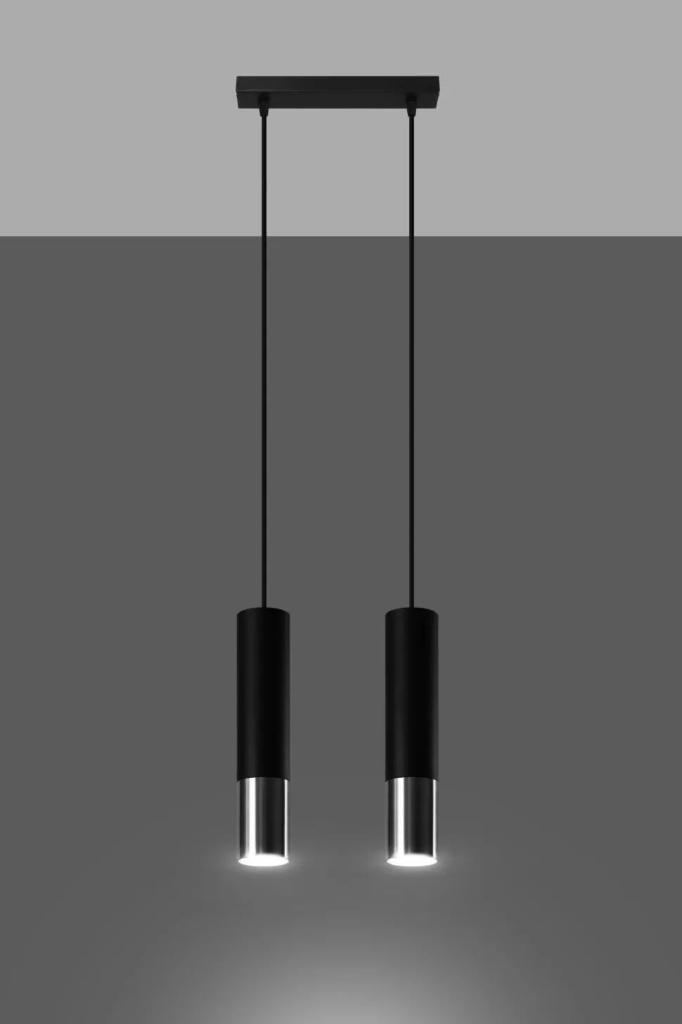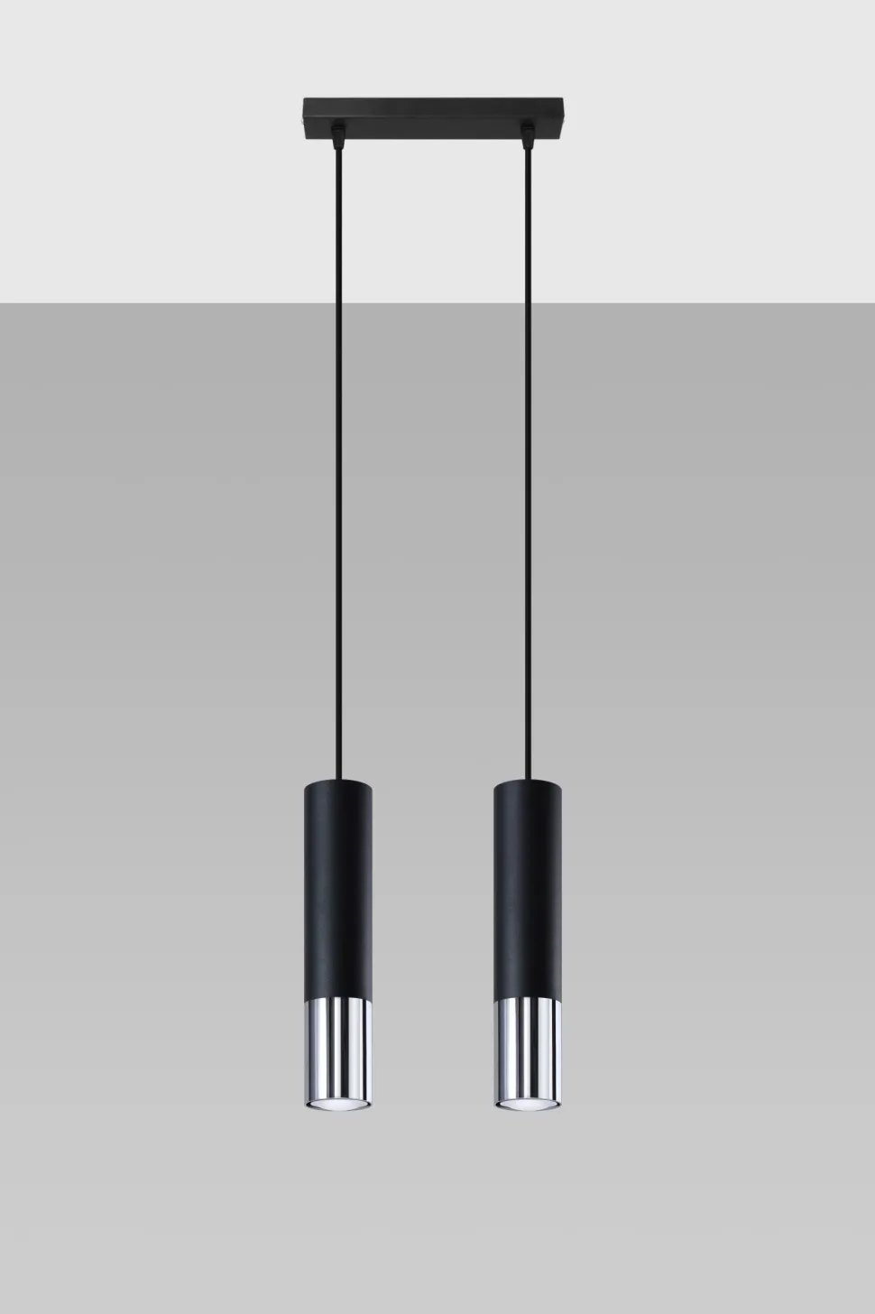 Moderne Pendelleuchte in Schwarz und Chrom