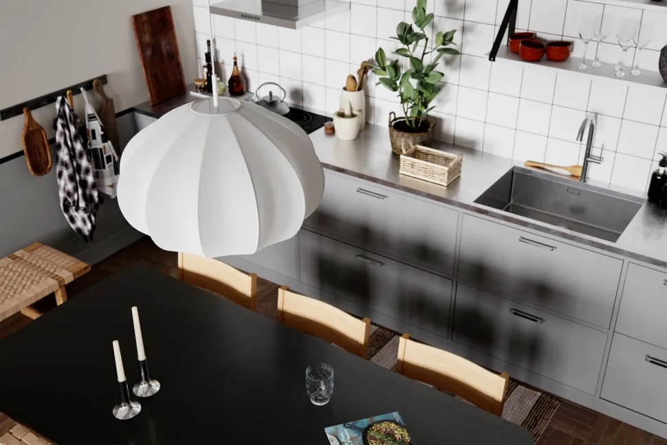 All White: Dank ihrer dezenten Farbe fügt sich die Hängeleuchte leicht in viele Einrichtungsstile ein und setzt dabei einem modernen Akzent
