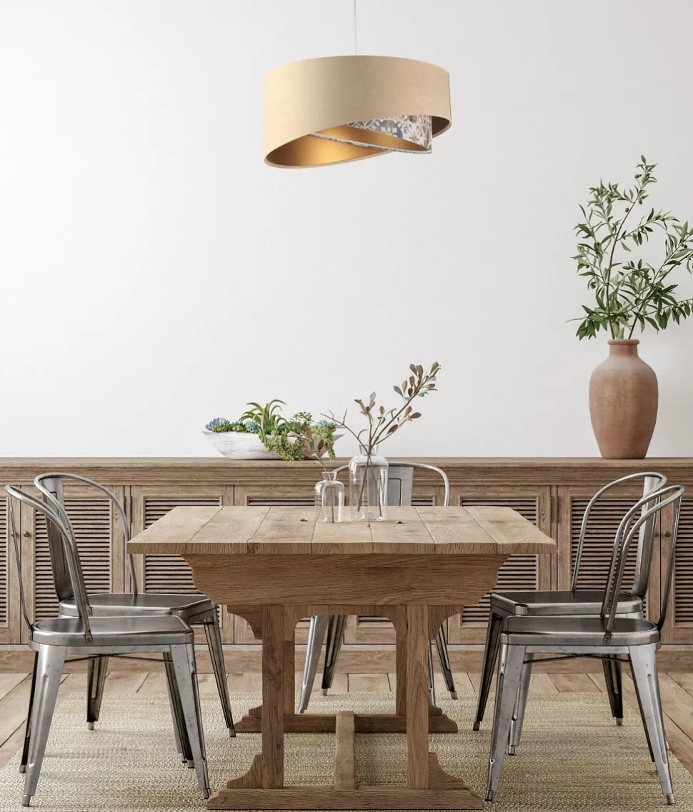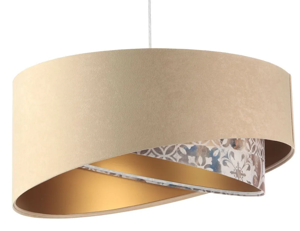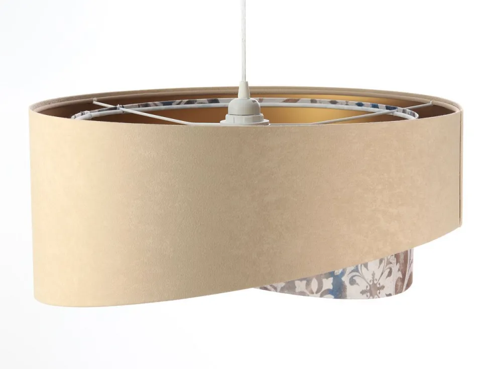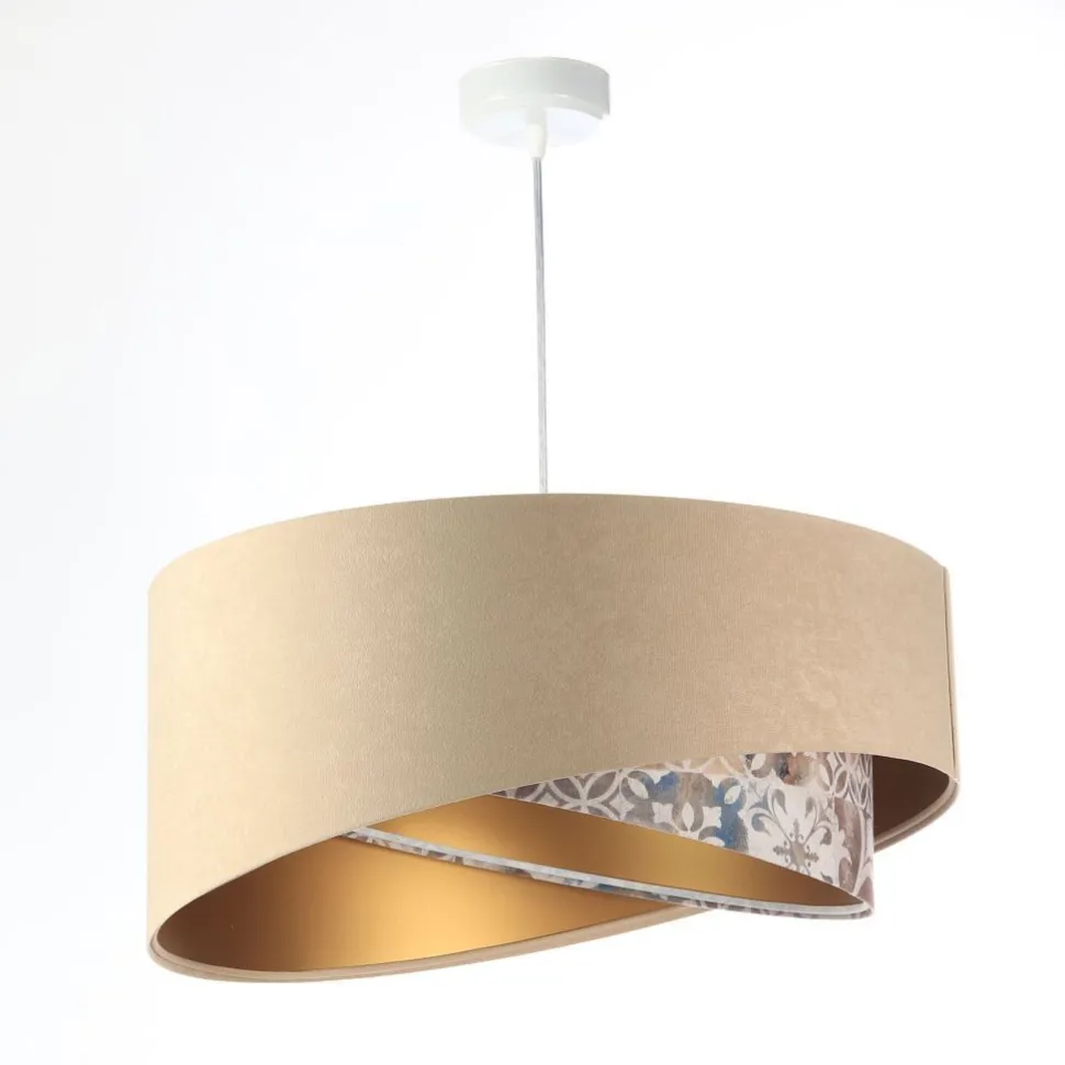 Elegante Pendelleuchte in Beige, Beige, Gold mit stilvollen Vintage Print für Wohnzimmer, Schlafzimmer und Esszimmer