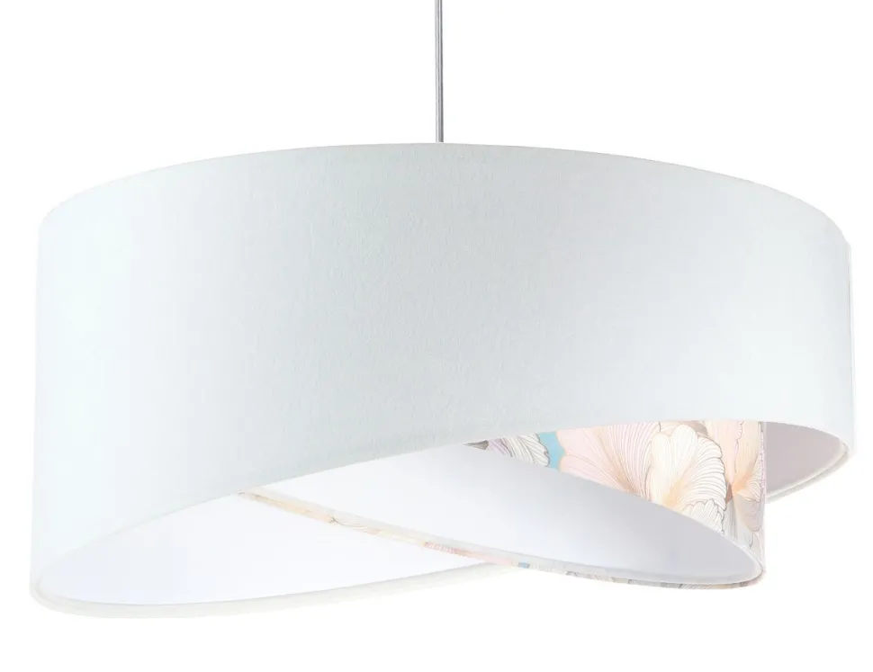 Elegante Pendelleuchte in Weiß, Creme mit abstraktem floralen Print für Wohnzimmer, Schlafzimmer und Esszimmer