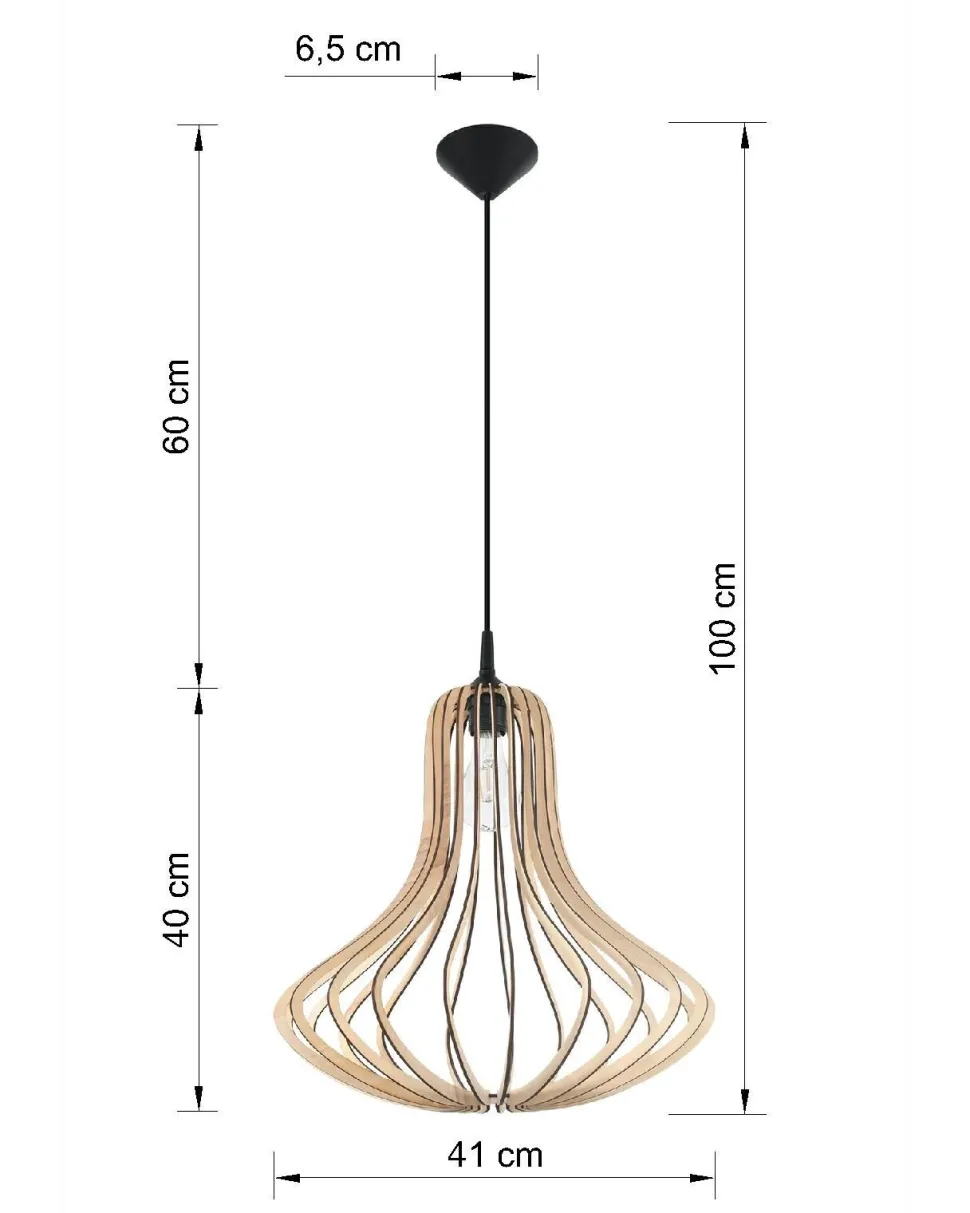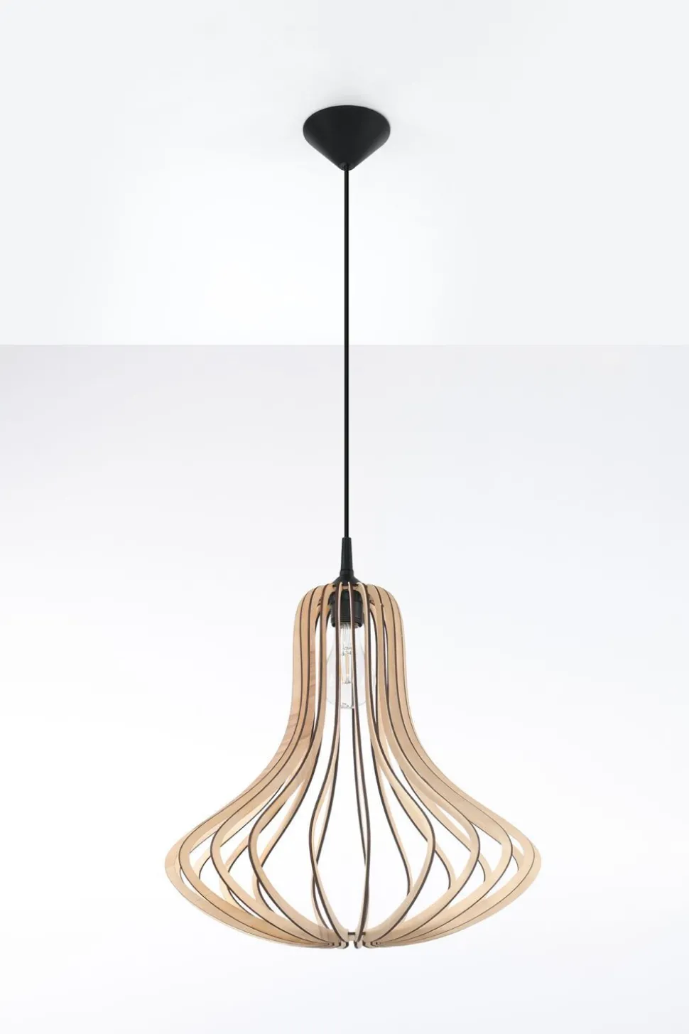 Der Lampenschirm aus Holz ist in einem wohnlichen Farbton gehalten und fügt sich ideal in jede Einrichtung ein