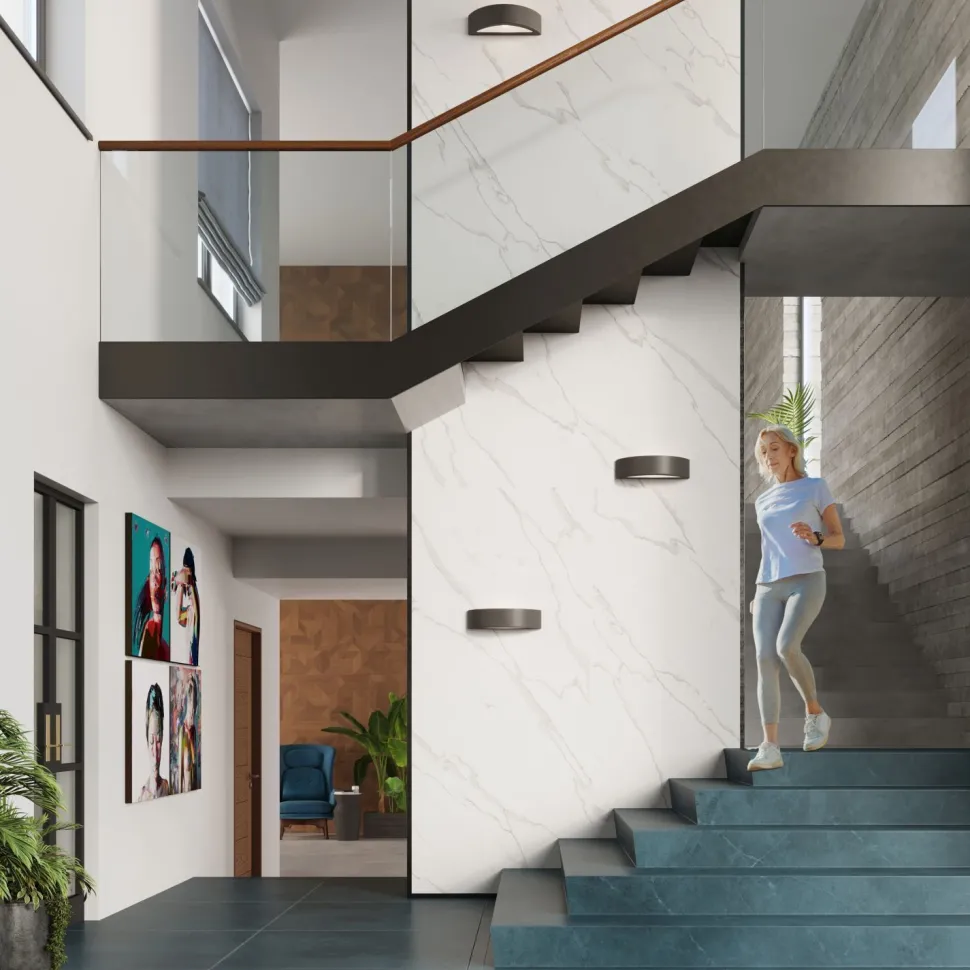 Das Licht der Wandlampe scheint nach oben und unten (Up Down Lampe), was und indirekte Beleuchtung erlaubt: ideal in Wohnzimmer, Flur und Treppenhaus