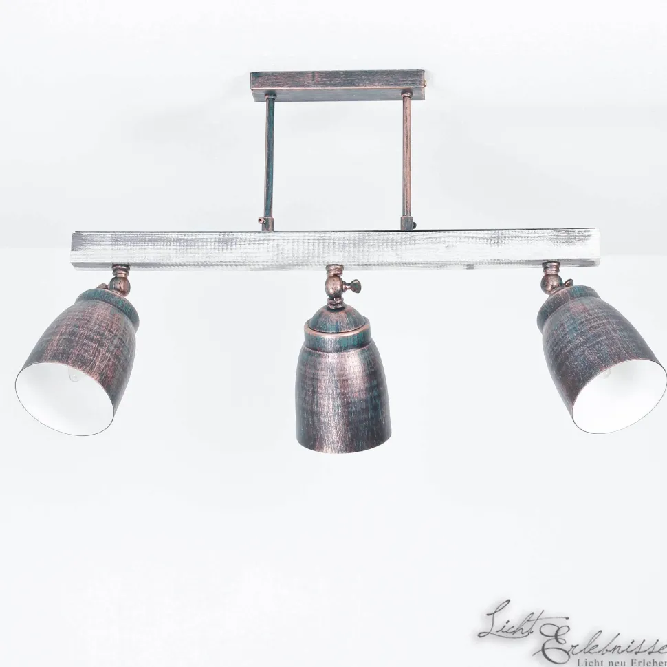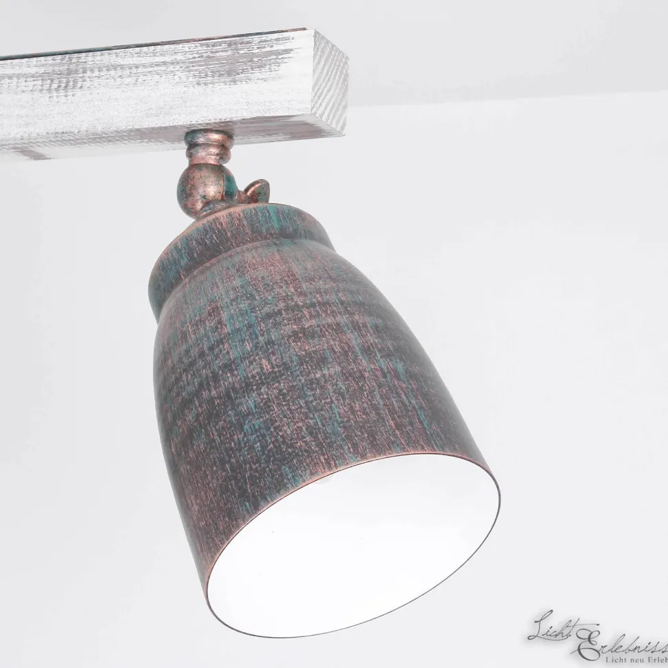 Vintage Deckenstrahler aus Metall und Holz im Shabby Chic für Wohnzimmer, Küche und Flur