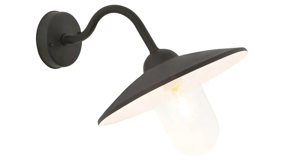 Industrie Wandleuchte aus Metall und Glas in Matt Schwarz für Außen