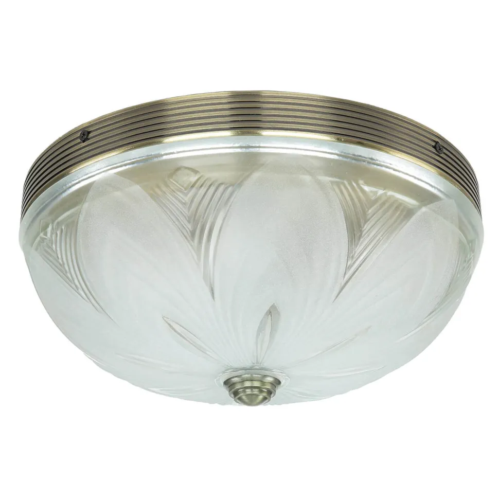 Jugendstil Deckenleuchte E27 mit Glasschirm Messing Optik