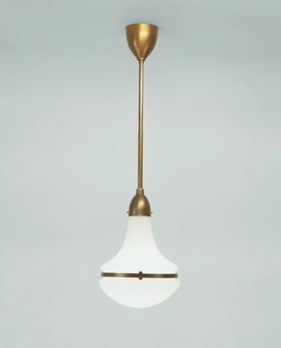 Jugendstil Pendelleuchte aus Messing und Glas