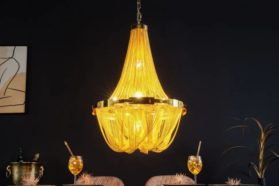 Die dünnen goldenen Metallketten bringen Eleganz in Dein Zuhause