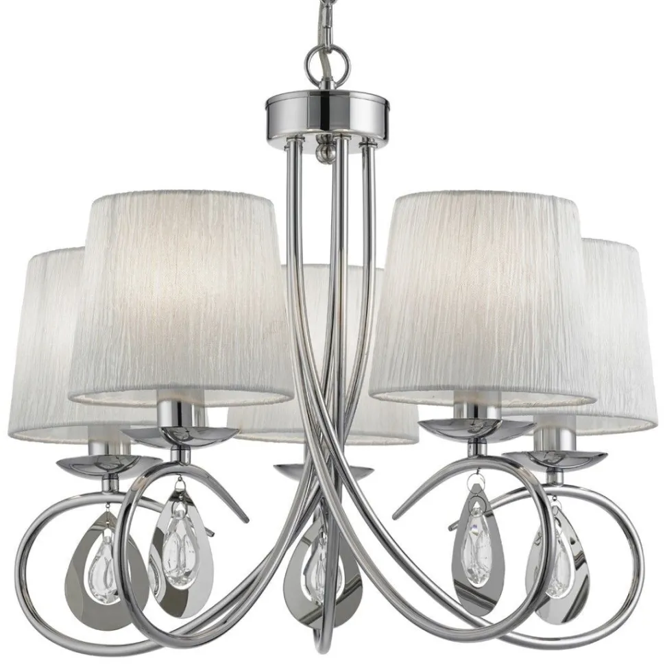 Klassisch Leuchte in Weiß, Chrom aus Metall, Stoff