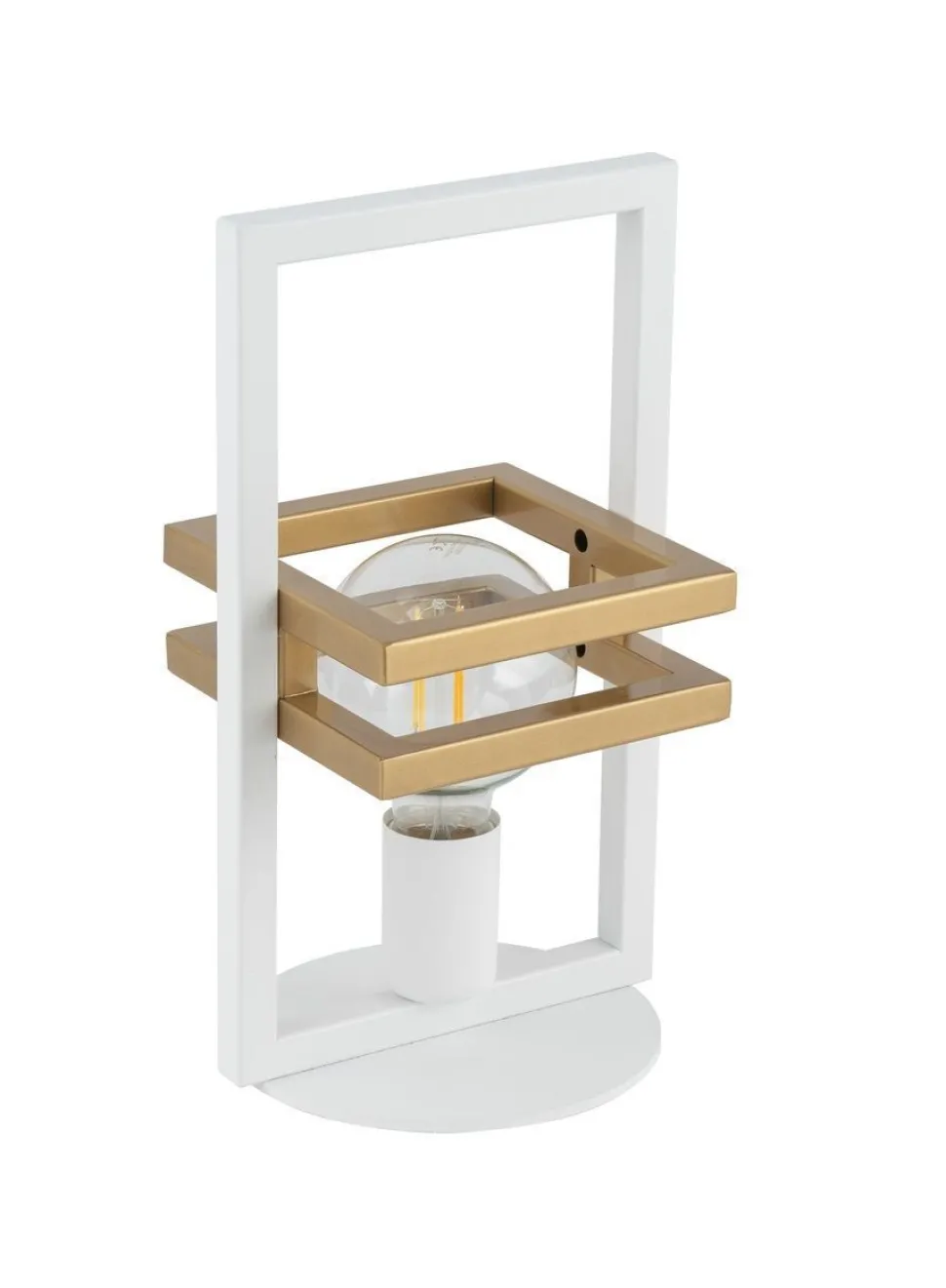 Das von zwei Rahmen in Gold umgebene Leuchtmittel ist frei sichtbar – dieses bestimmt maßgeblich den Look der Leuchte mit