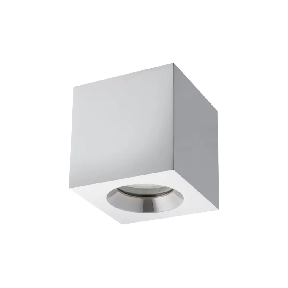 Zeitloser Aufbaustrahler aus Aluminium und Glas in Chrom