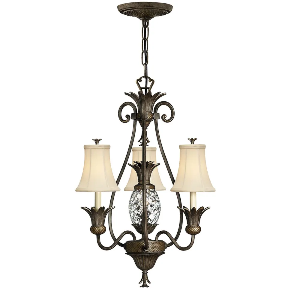 Eine Ananas aus geschliffenem Glas dient als Lampenschirm für das mittig stehende Licht und macht aus der Pendelleuchte ein dekoratives Meisterwerk