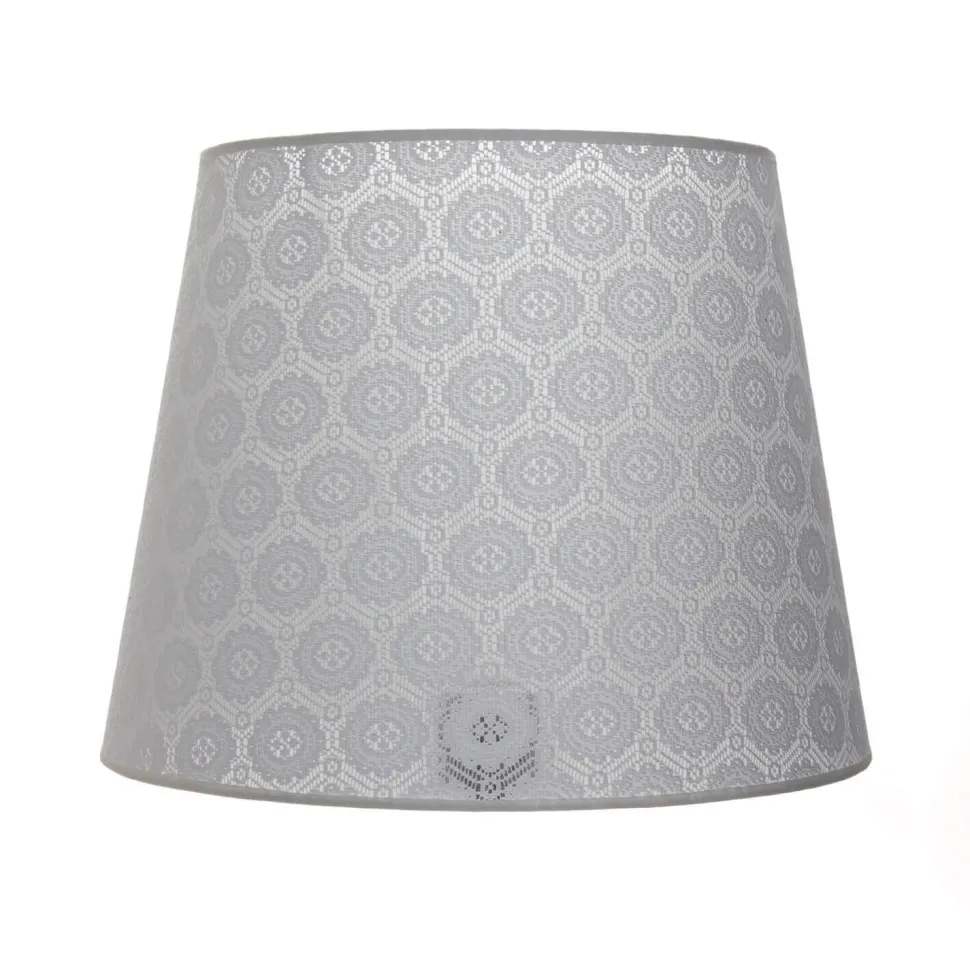 Gehäkelter Spitzenstoff wurde auf einen leichte Unterlage aus Kunststoff geklebt, was dem Schirm seine konische Form gibt