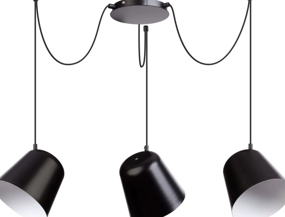 Hängeleuchte im Spider-/Spinnen-Stil: vom Baldachin ausgehende Kabel und Leuchtmittel nach eigener Vorstellung verstellbar