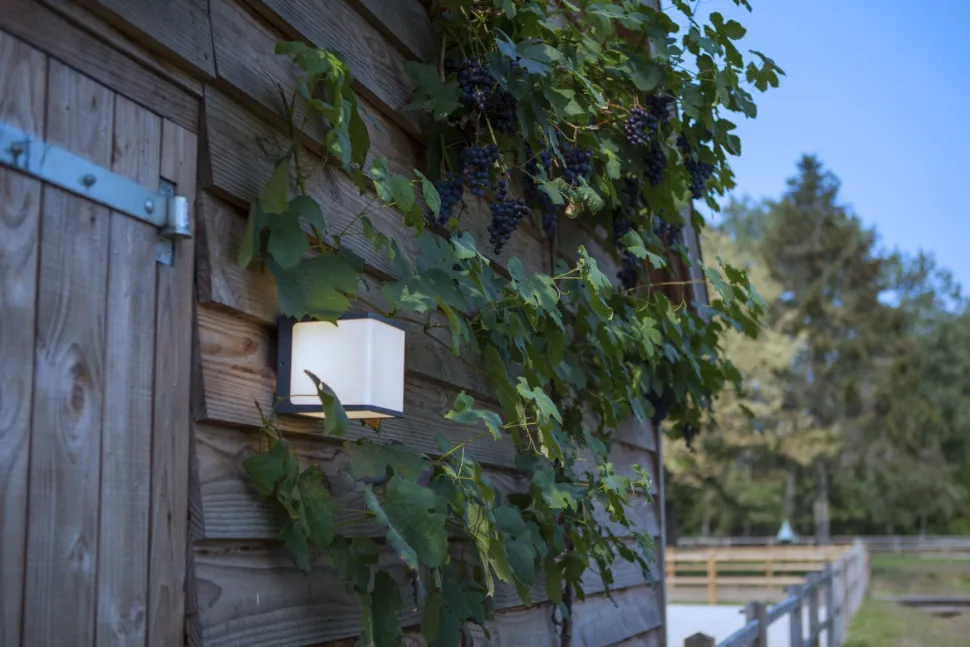 Der Kunststoffdiffusor streut das Licht blendarm für ein gemütliches Ambiente im Outdoor-Bereich