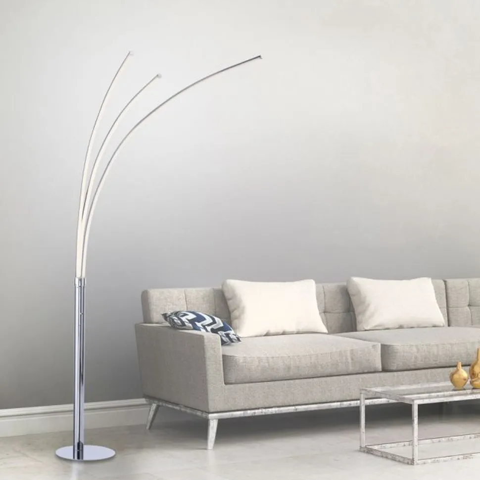Moderne LED Stehleuchte aus Metall in Chrom