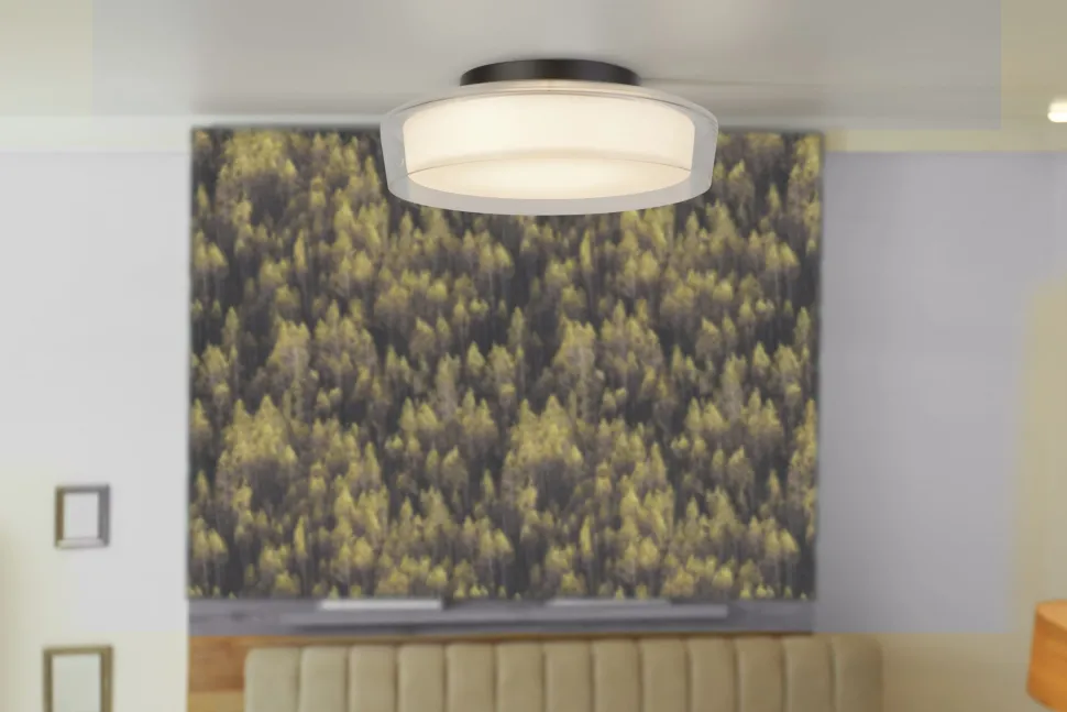 Der runde Doppelschirm aus Glas sorgt für eine blendarme und angenehme Beleuchtung
