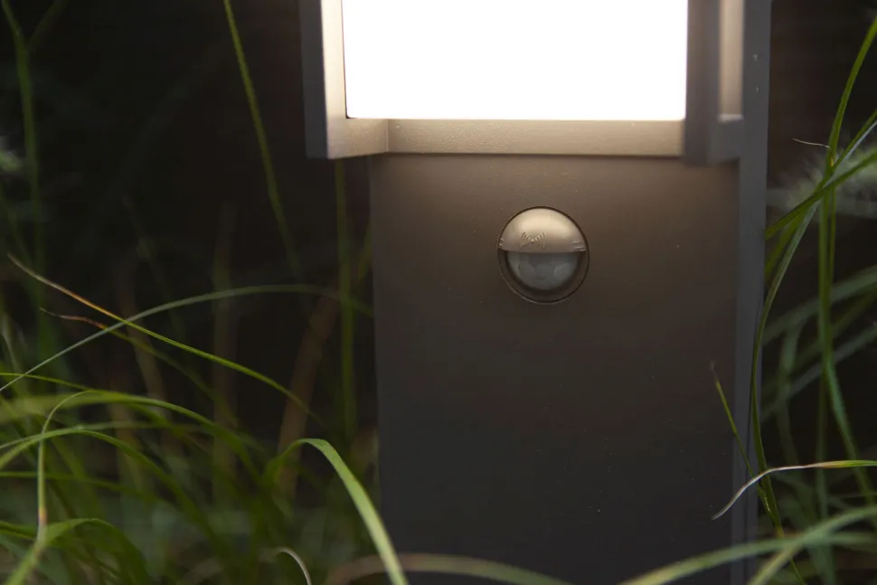 Dank praktischem Bewegungsmelder schaltet die Außenlampe erst bei Einbruch der Dämmerung für eine effiziente Beleuchtung